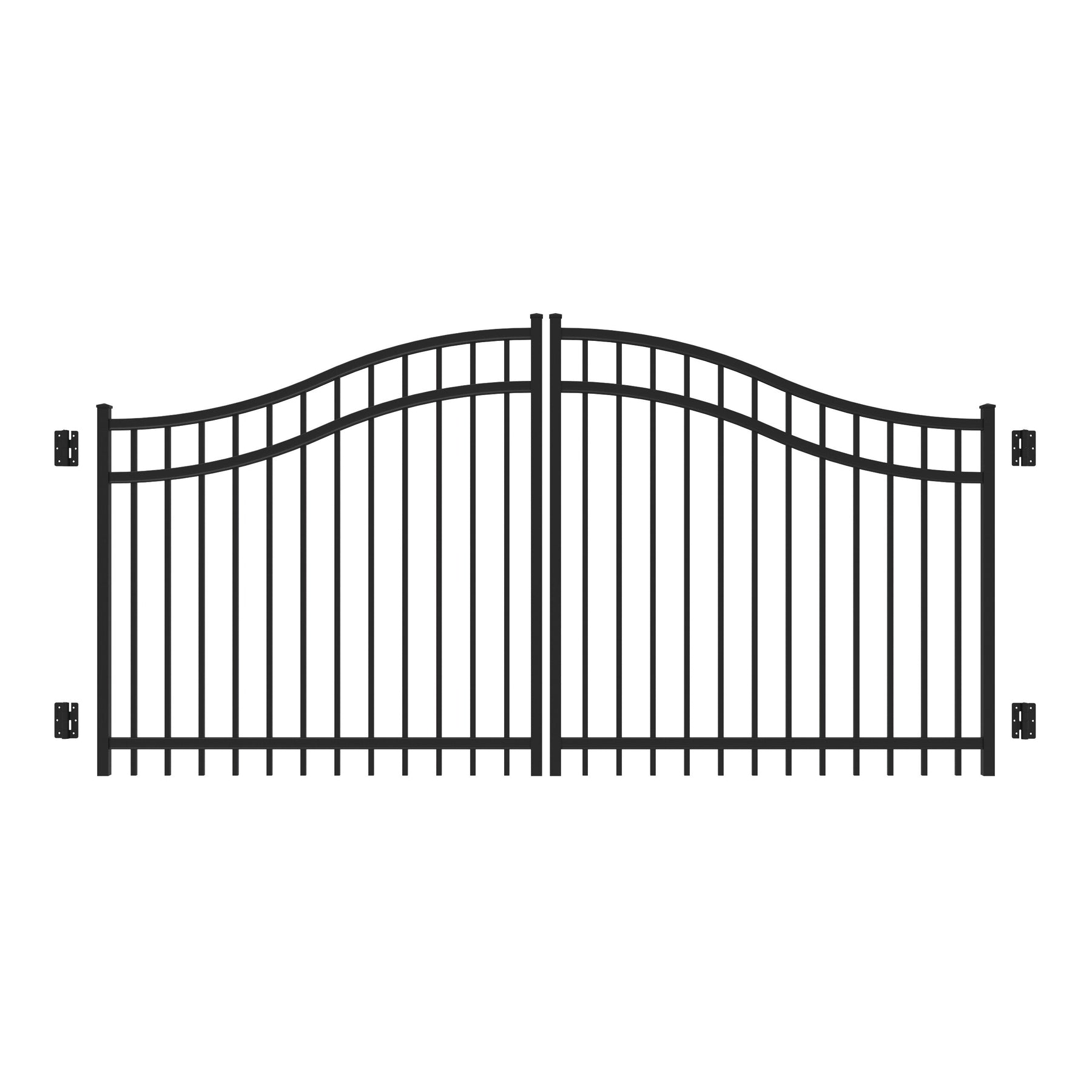 The New Haven 4-ft H x 10-ft W Black Aluminum Decorative Fence Gate combines elegance and durability, providing a stylish entryway to secure your property. Crafted from high-quality aluminum, this arched-top gate features spaced pickets and ensures both longevity and a sophisticated aesthetic. Perfect for both residential and commercial use, its pre-welded design minimizes visible fasteners for a clean finish.