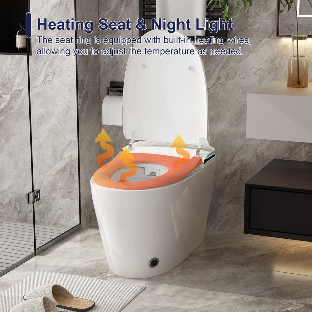 Elevate your bathroom sanctuary with the FUFU&GAGA Smart Bidet Toilet's cutting-edge, tankless design that echoes modern elegance. Its sleek lines and luminous white finish create a futuristic vibe, seamlessly integrating with minimalist decor themes. Add an asymmetric mirror and lush greenery for a spa-like oasis that speaks luxury. This is more than a toilet; it's a statement in sophisticated living, merging technology with style for a transformative experience.