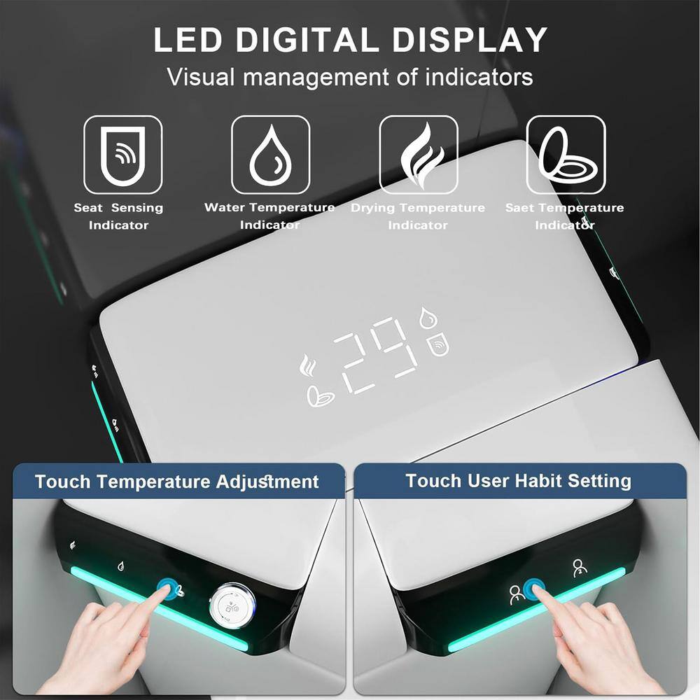 Transform your bathroom with the innovative FUNKOL Elongated Smart Bidet Toilet. Designed to elevate comfort and hygiene, it boasts an auto-flush system, heated seat, warm water wash, and a gentle night light. With an intuitive touch panel and remote control, this high-tech solution brings luxury and convenience to any home.