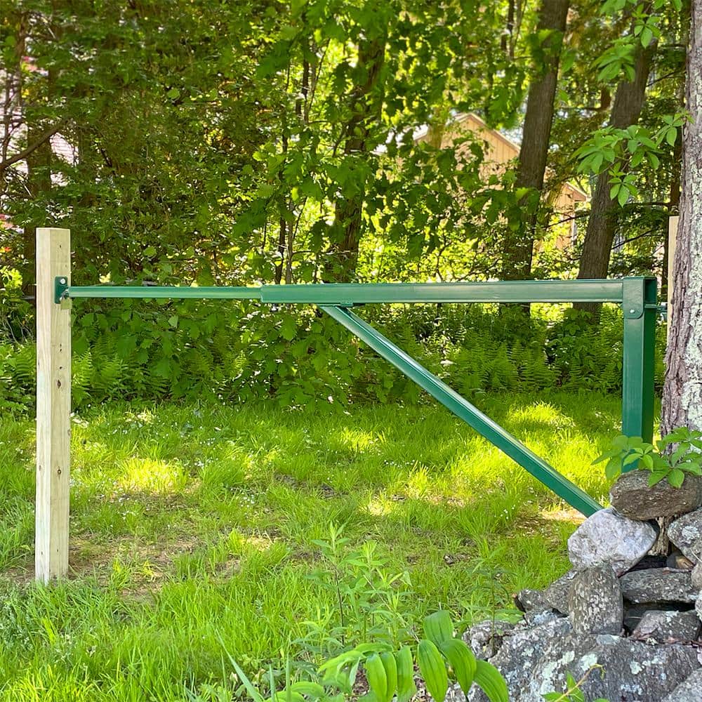 Enhance your property's security with the Garden Craft Adjustable Green Metal Fence Gate. This sturdy gate extends from 5 ft. to 11.6 ft., making it versatile for various applications. Crafted from powder-coated steel, it's built to withstand the elements, while its collapsible design ensures easy transport and installation.