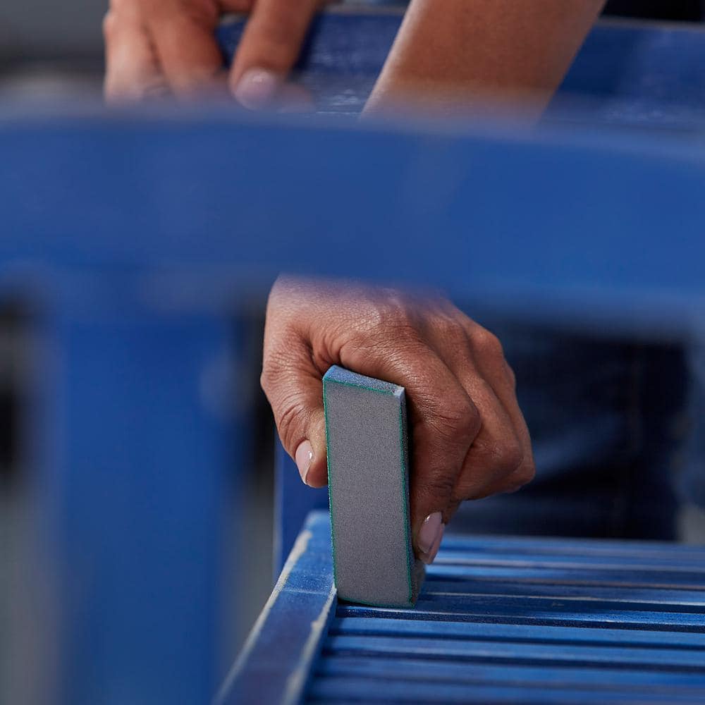 A: This 80-grit sanding sponge is best for coarse sanding and stripping tasks on wood, metal, fiberglass, and painted surfaces.