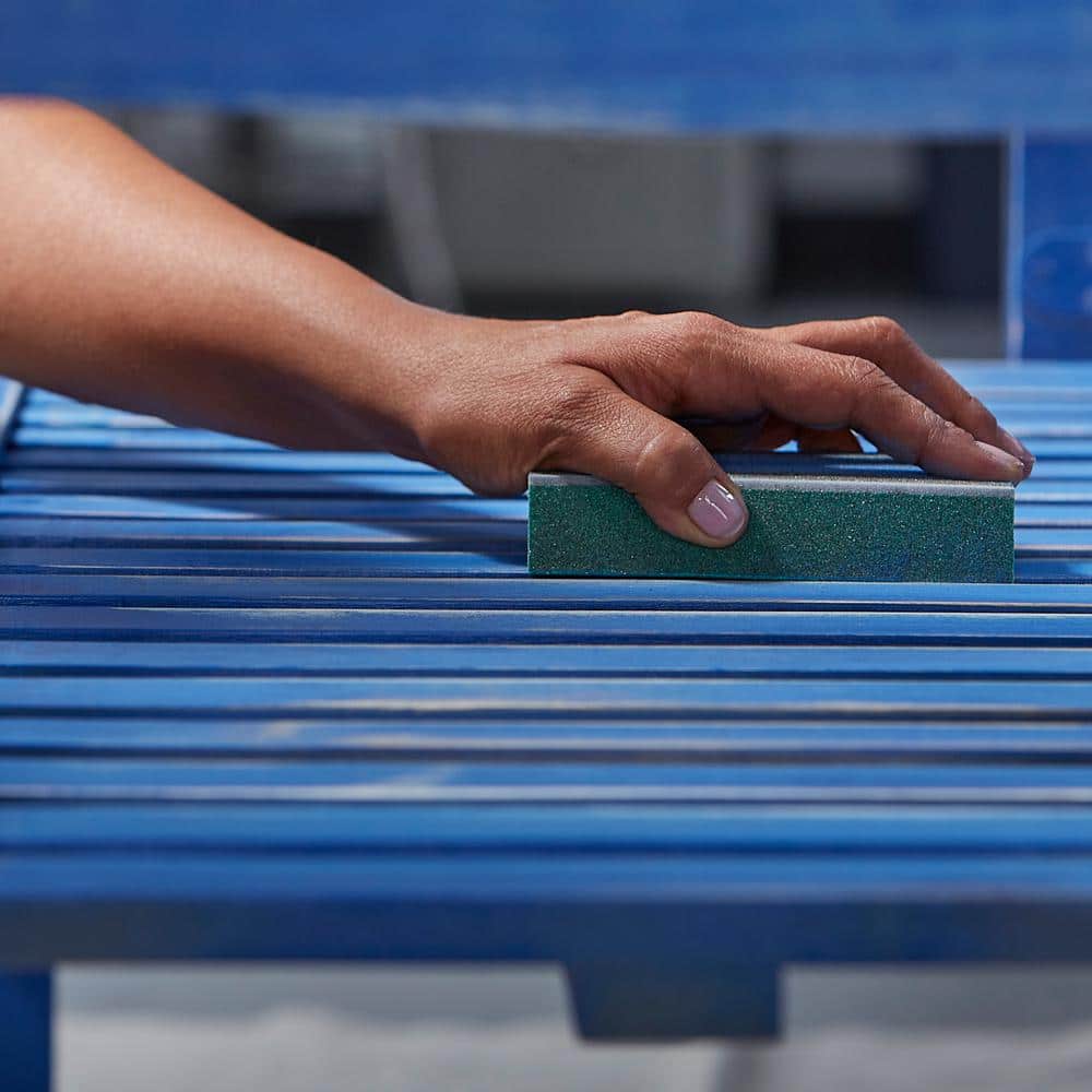 A: For optimal results, sand with the grain of the material and progress through a sequence of grits, from coarse to very fine.