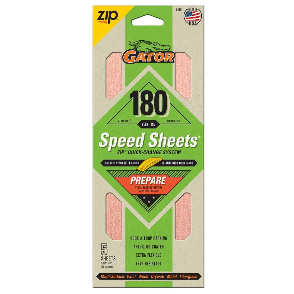 Gator Speed Sheets 3-2/3 in. x 9 in. 180 Grit Very Fine Hook and Loop Sand Paper (5-Pack)