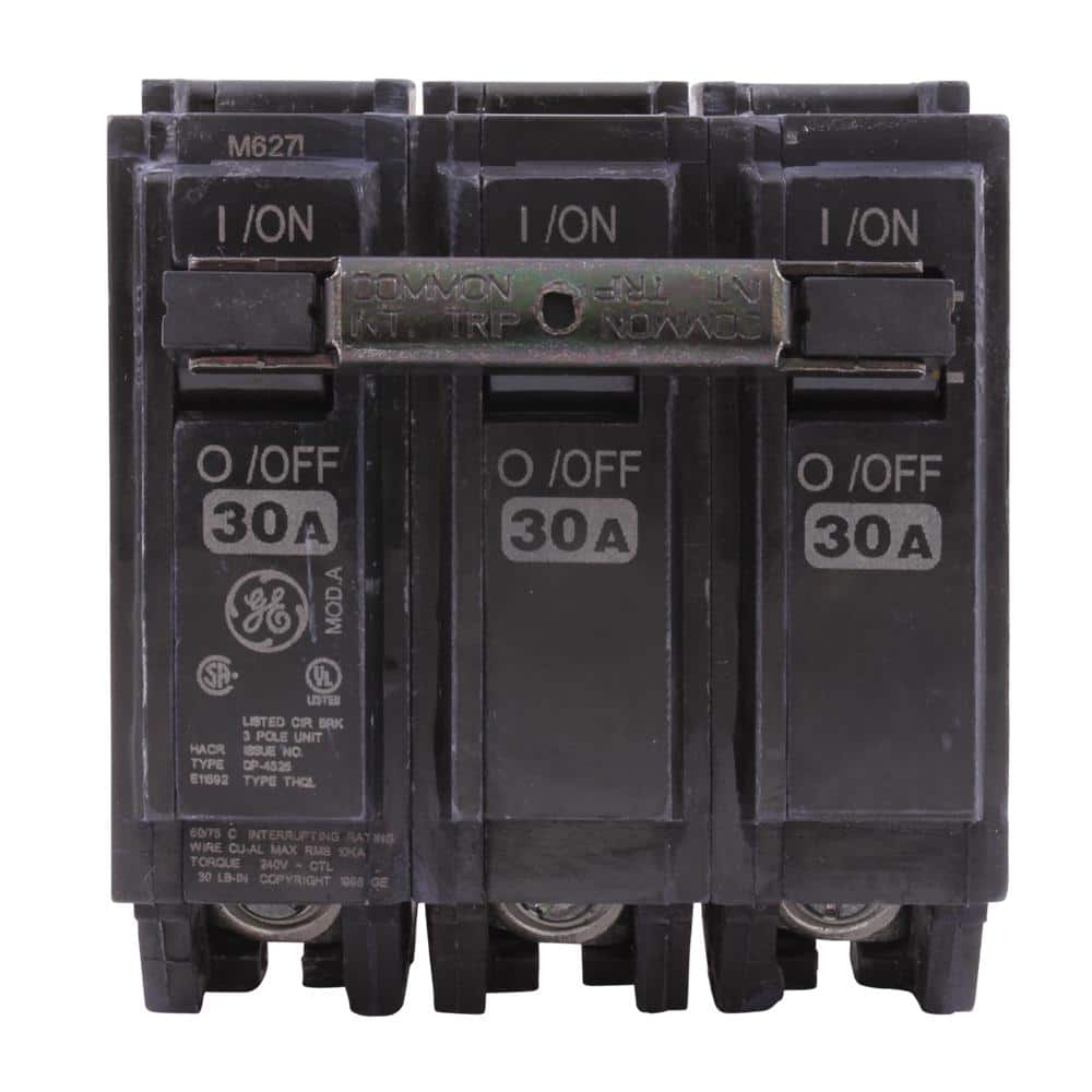 A: The GE Q-Line 30 Amp Triple-Pole Circuit Breaker comes with a one-year warranty from the first use.
