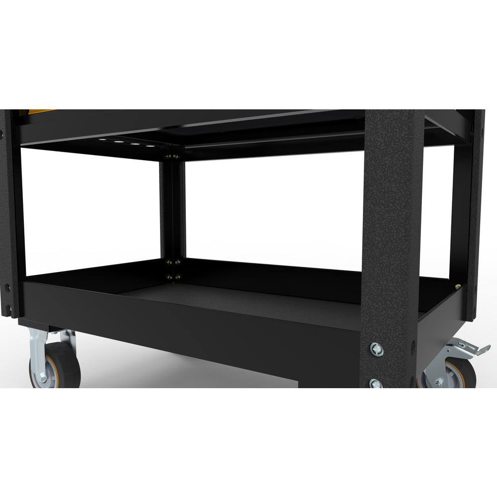This utility cart transforms a workspace into an efficiently organized sanctuary, blending robust functionality with sleek design. The contrasting black and orange colors of its sturdy steel frame add an industrial yet stylish touch. Use it to artfully arrange tools in your garage or workshop, creating a professional appearance that speaks to your attention to detail. Elevate your home improvement projects with this essential piece of mobile artistry, redefining ease and accessibility.