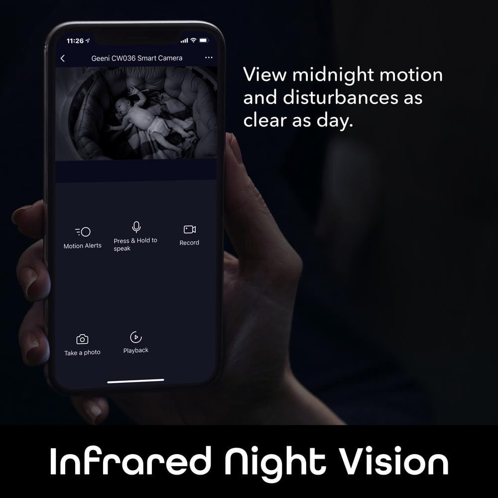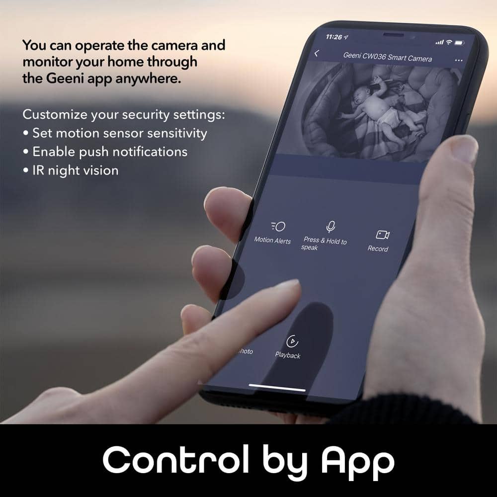 The Geeni Glimpse 1080p HD Wireless Smart Camera delivers extensive coverage and clarity for your home security needs. Effortlessly monitor indoor spaces with this device that features 24/7 recording, motion detection, and night vision, all managed via the Geeni app. It's compatible with smart home voice assistants and requires no additional hub, making installation swift and straightforward.