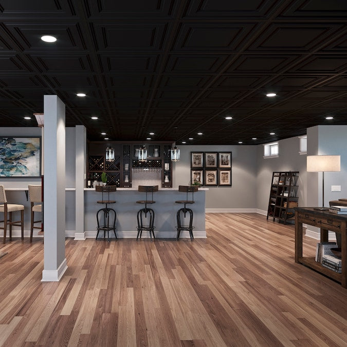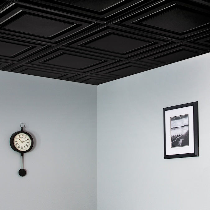 Transform your ceiling with the Genesis Icon Relief Black PVC Ceiling Tile. Engineered for resilience and style, these panels are moisture-resistant and designed to prevent spotting, staining, and rust. Ideal for both residential and commercial spaces, these tiles redefine durability and elegance in any environment.