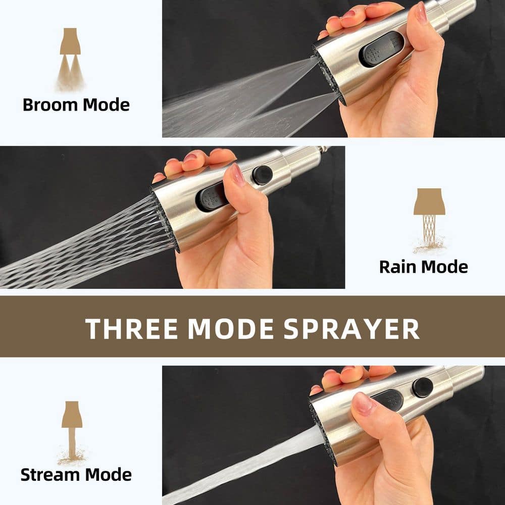 Versatile Faucet: Features three flow modes and a 360-degree swivel for convenience.
