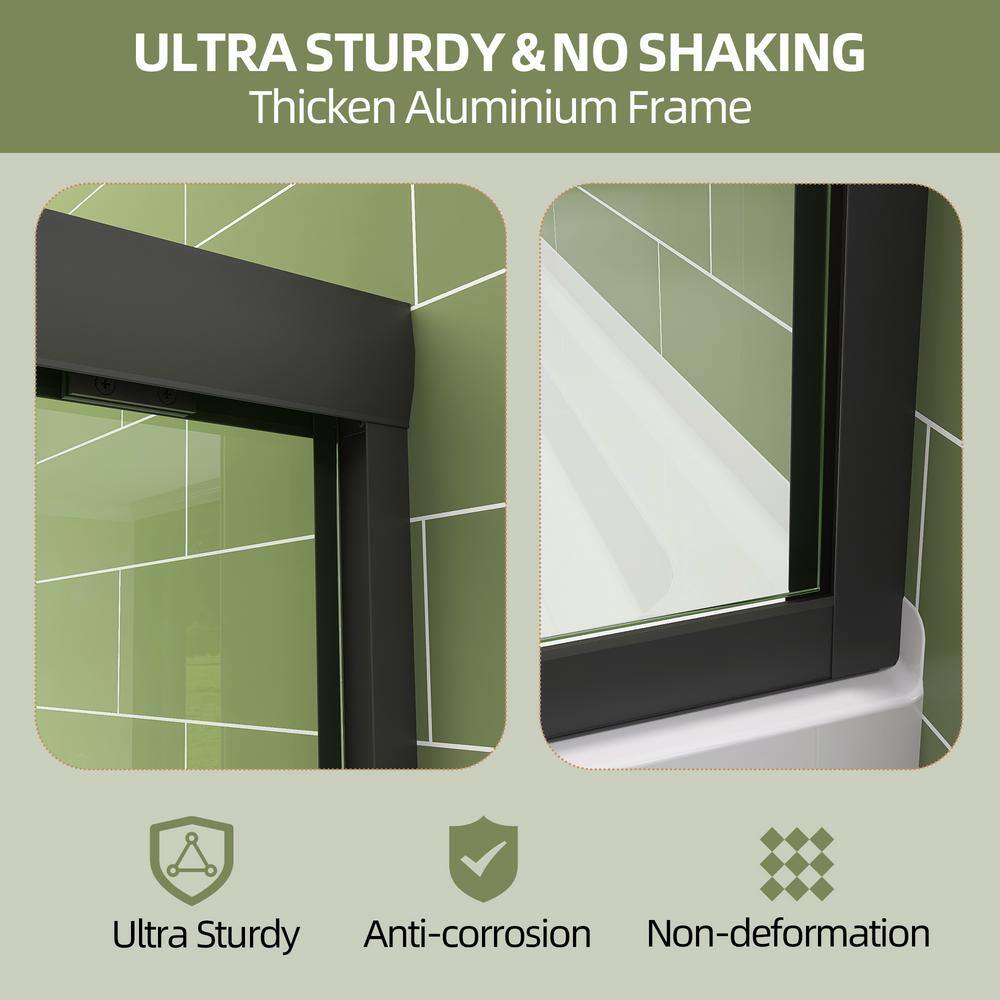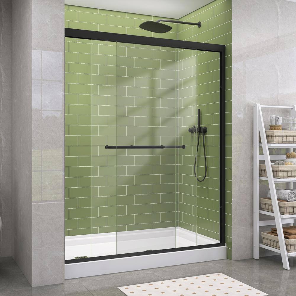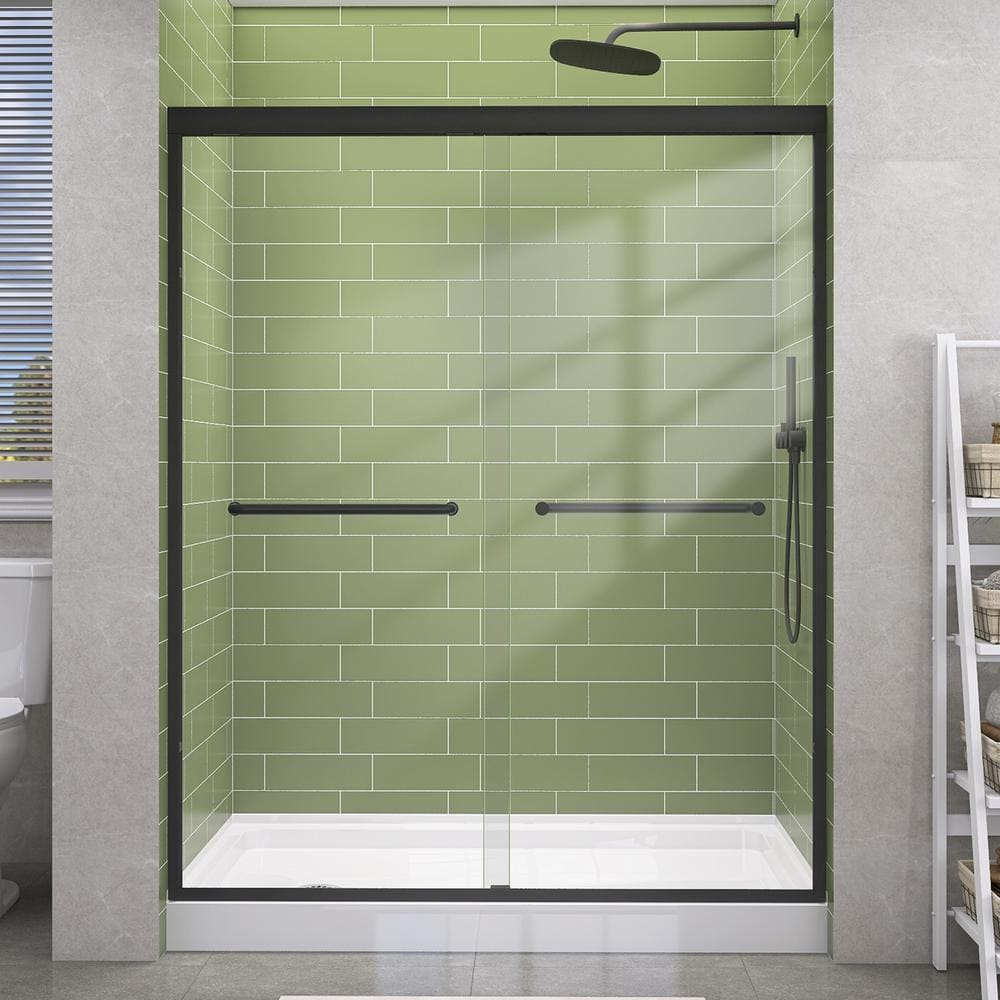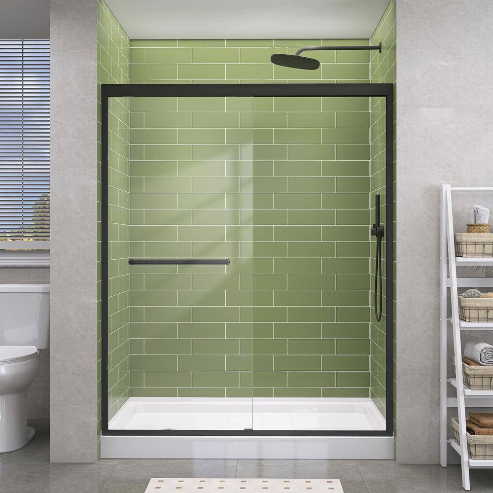 Elevate your bathroom aesthetics with the Getpro Double Sliding Framed Shower Door in Matte Black. This sleek, modern door features clear tempered glass for safety and sound insulation, and a smooth-gliding roller system for effortless functionality. Enhance your space with this easy-to-install, durable solution that combines style and practicality.