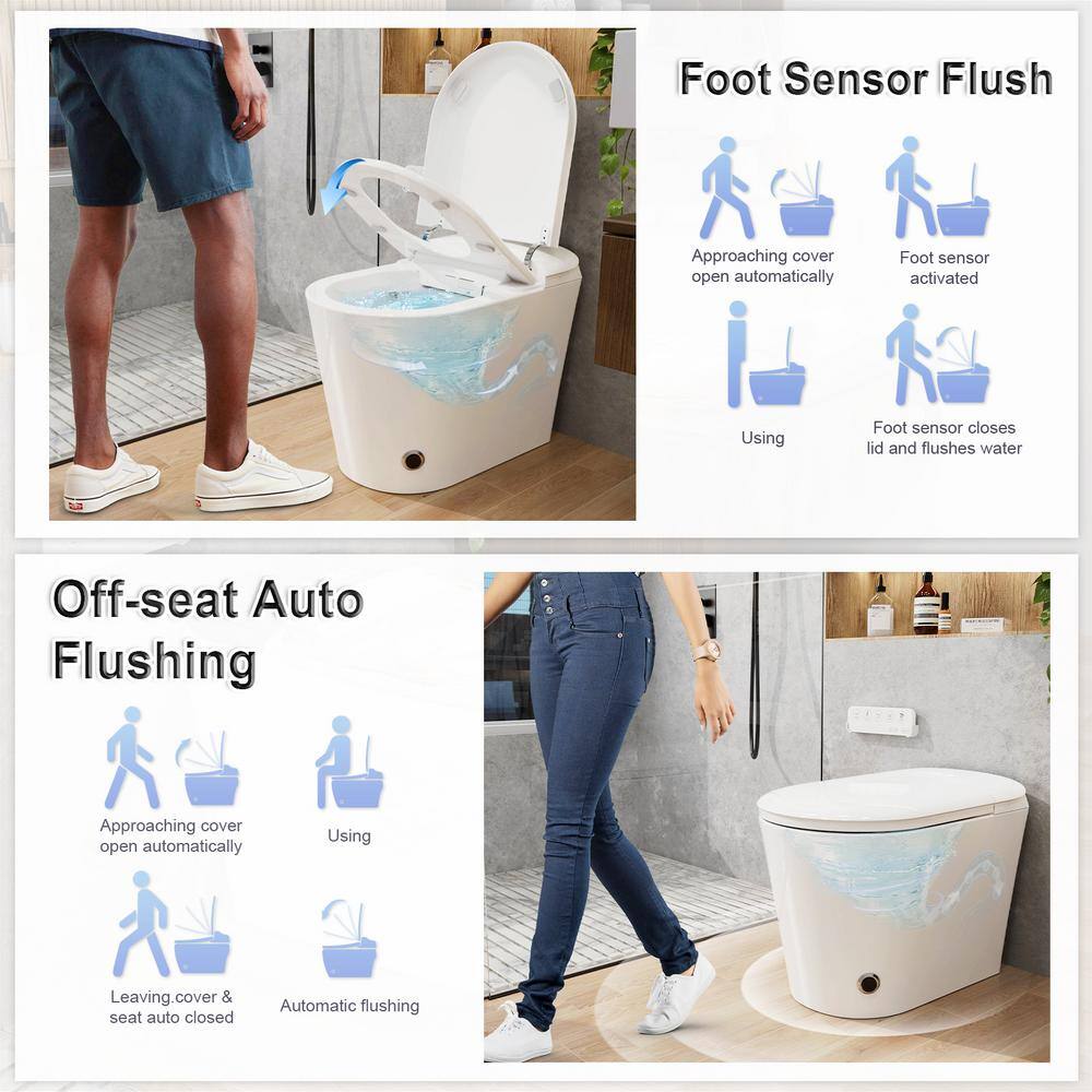 User-Friendly Features: Automatic flushing, radar flip lid, and foot-activated controls for convenience.