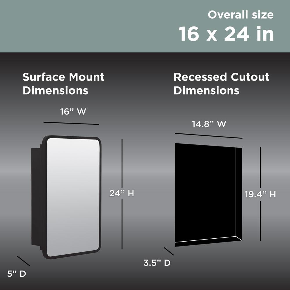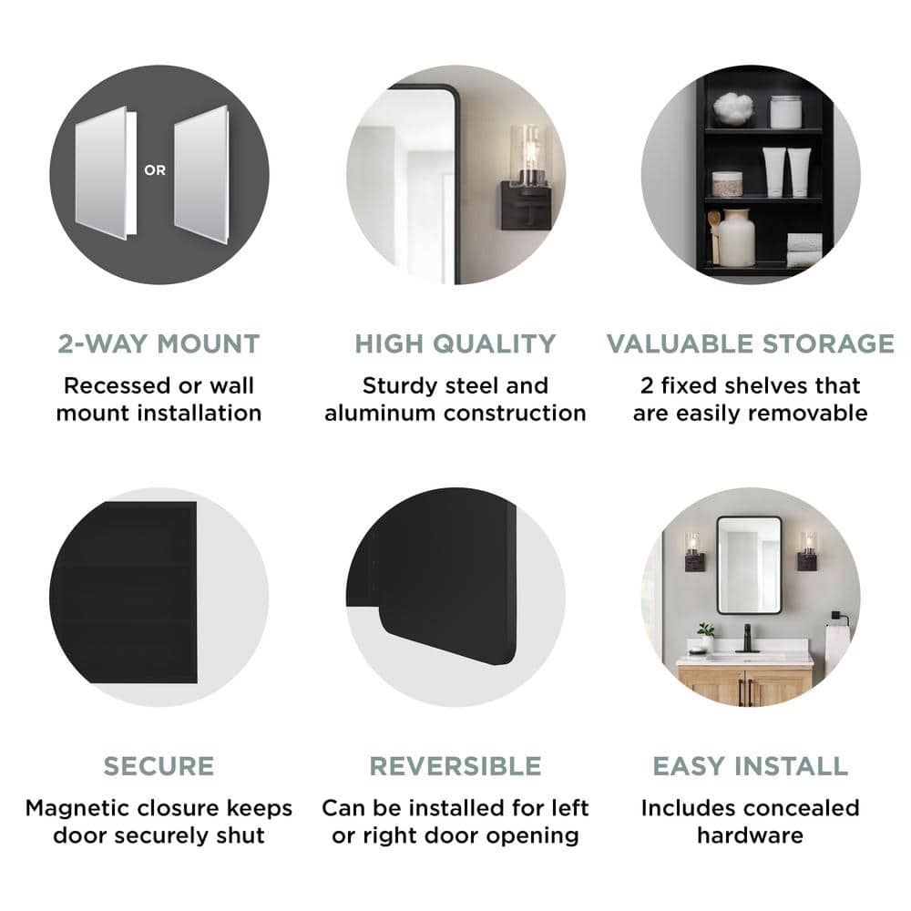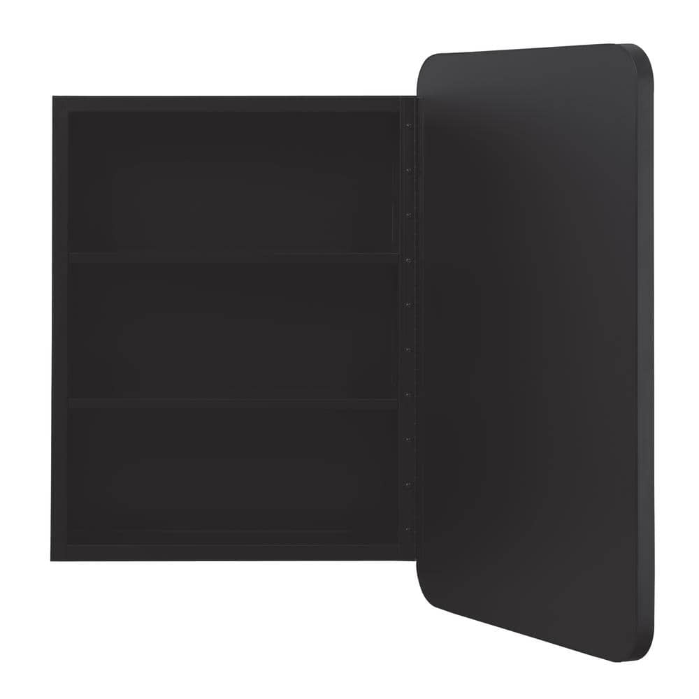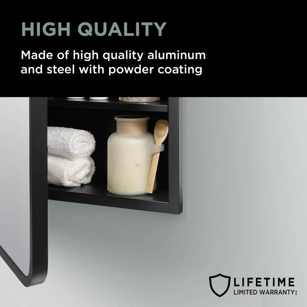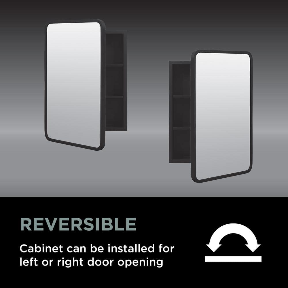 Upgrade your bathroom with the Glacier Bay Rounded Corner Rectangular Matte Black Medicine Cabinet. This elegant cabinet offers a modern design with a sleek matte black finish, featuring both recessed or surface-mount installation for versatility. Inside, it provides ample storage with two removable shelves, ensuring you can customize your organizational needs.