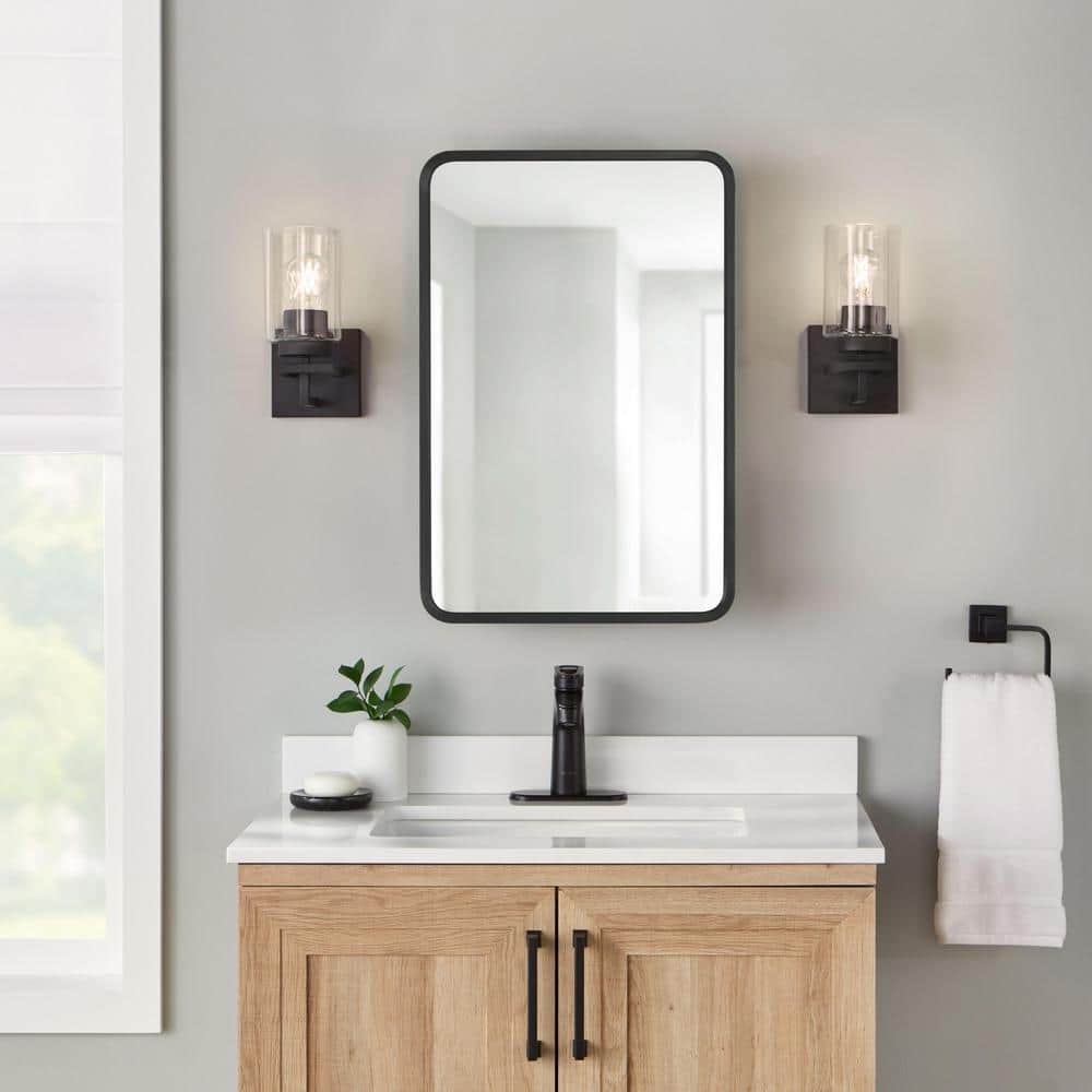 Transform your bathroom into a sanctuary of contemporary elegance with the Glacier Bay Matte Black Medicine Cabinet. Its sleek, rounded corners exude sophistication, while the matte black finish delivers a timeless appeal that complements any decor. Use it to anchor a minimalist aesthetic paired with geometric fixtures and monochromatic tones. This piece not only offers functional storage but also serves as a stylish focal point, making it an indispensable element of modern luxurious living.