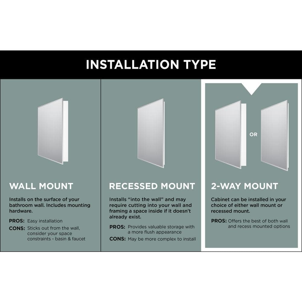- Versatile Mounting: Choose between surface or recessed installation to suit your bathroom layout.