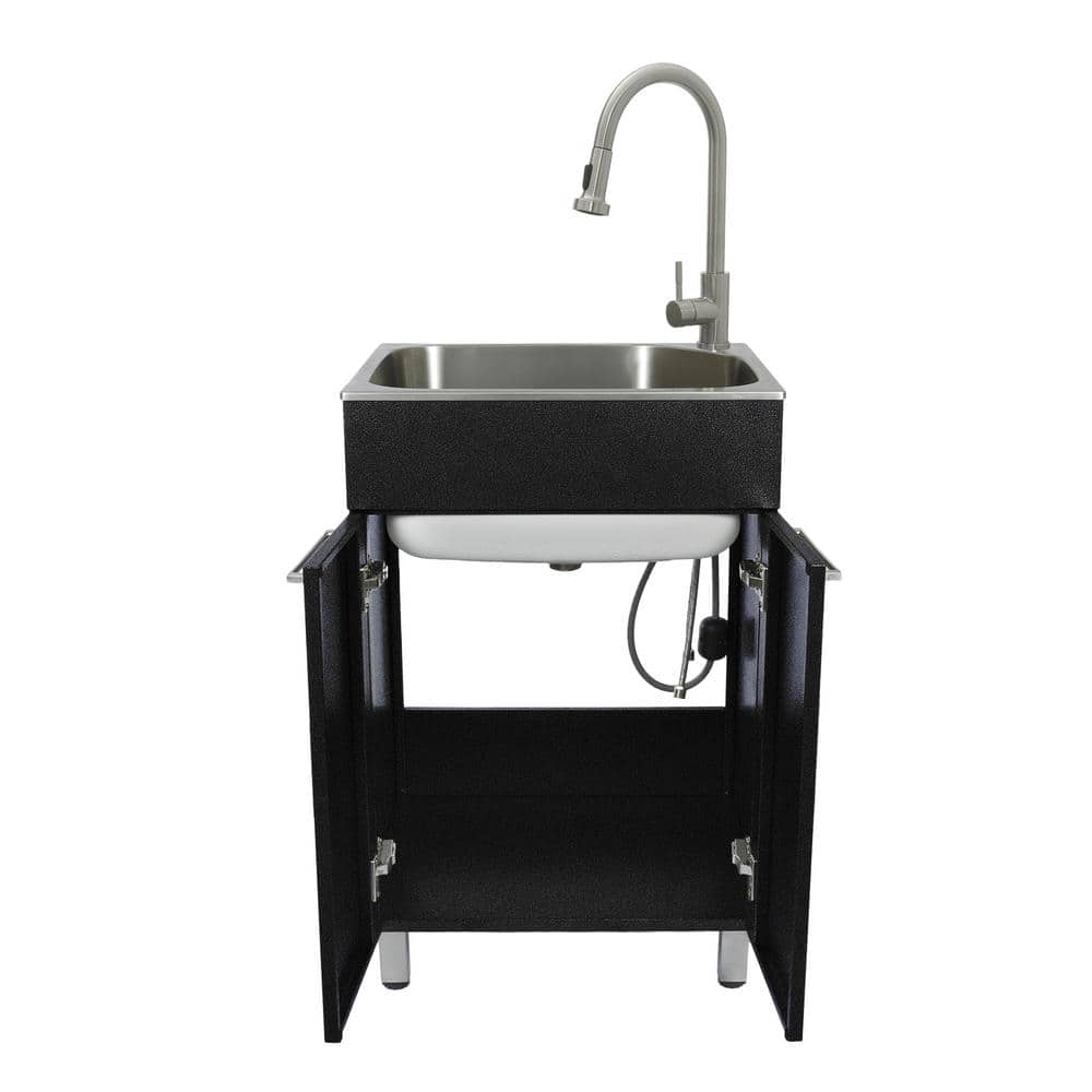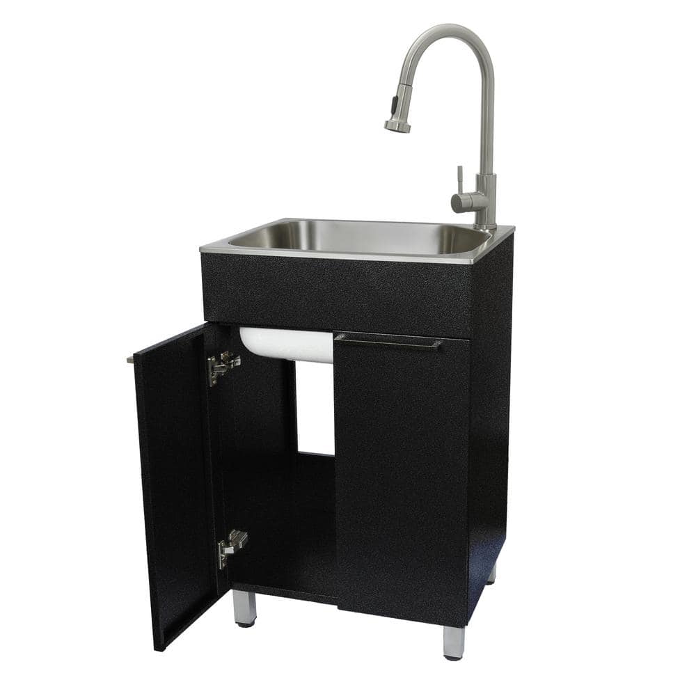 Glacier Bay Stainless Steel Laundry Sink with Faucet and Double Door Cabinet in Black