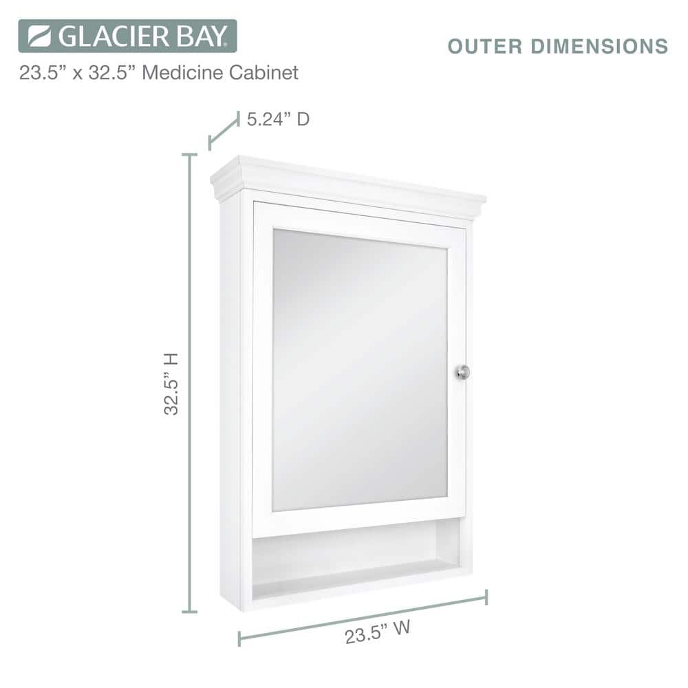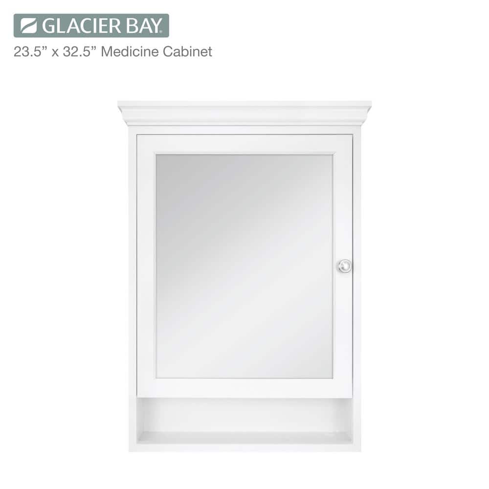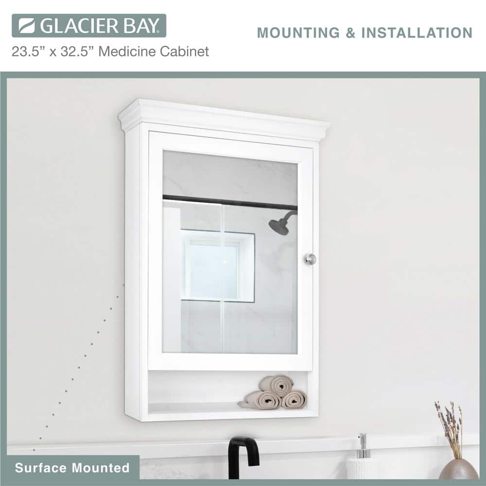 Glacier Bay 23-1/2 in. W x 32-1/2 in. H Framed Surface-Mount Bathroom Medicine Cabinet with Mirror, White