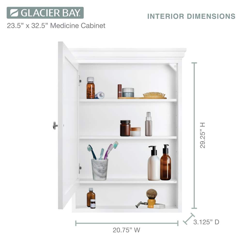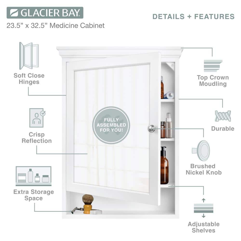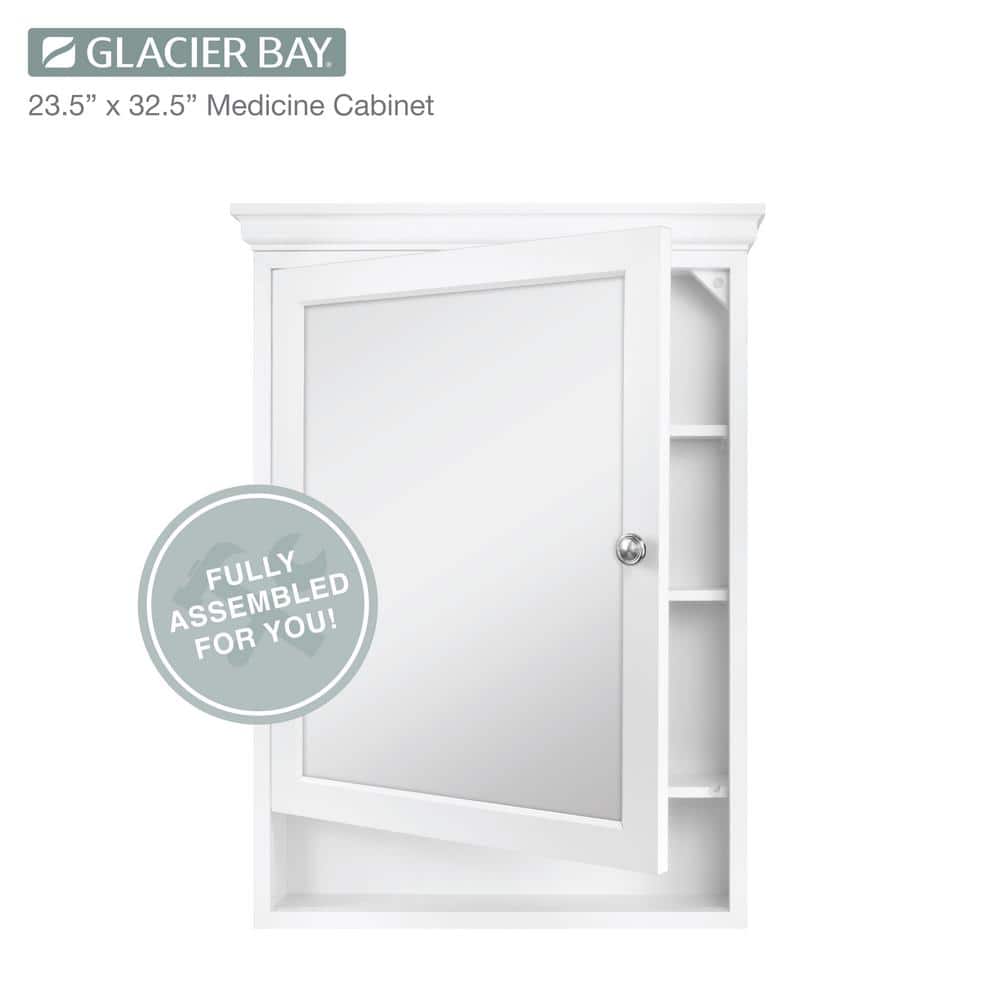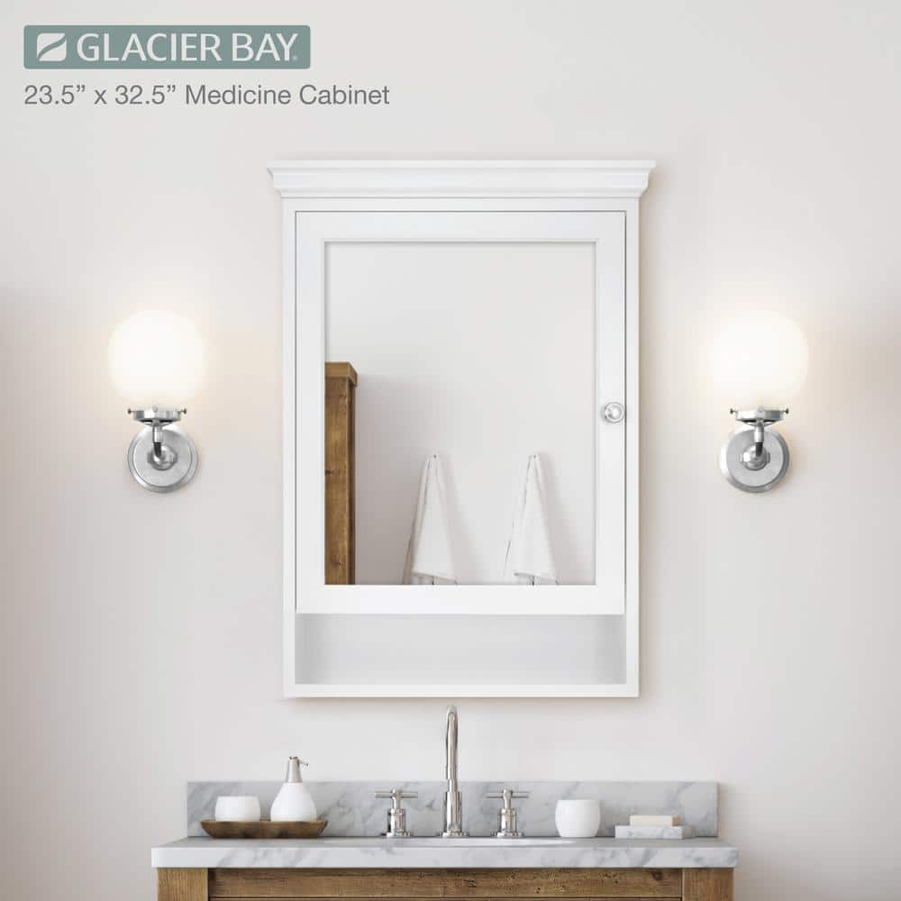Glacier Bay 23-1/2 in. W x 32-1/2 in. H Framed Surface-Mount Bathroom Medicine Cabinet with Mirror, White