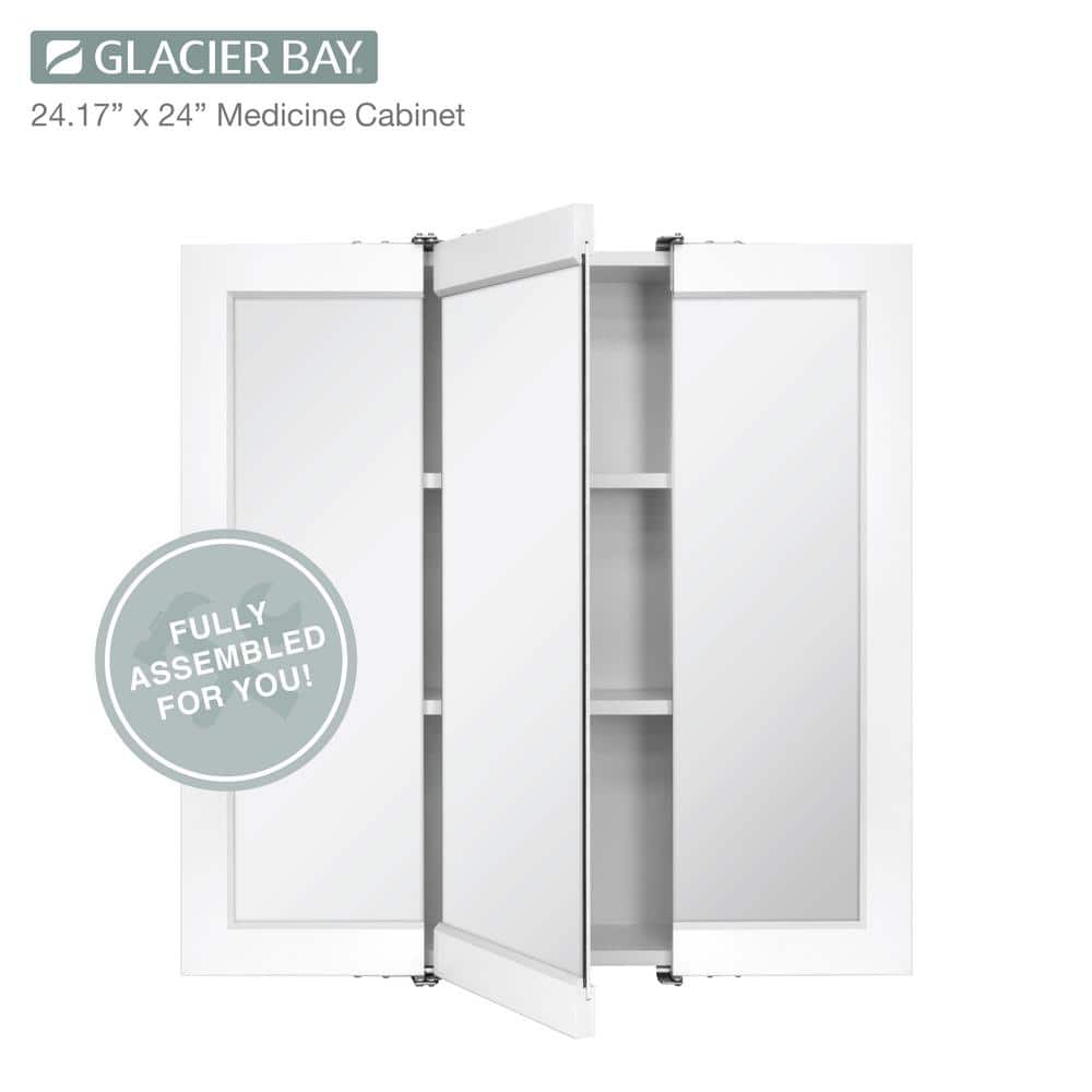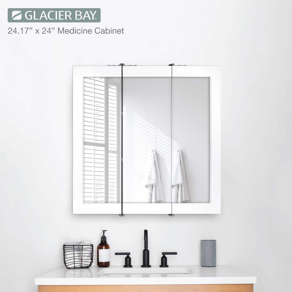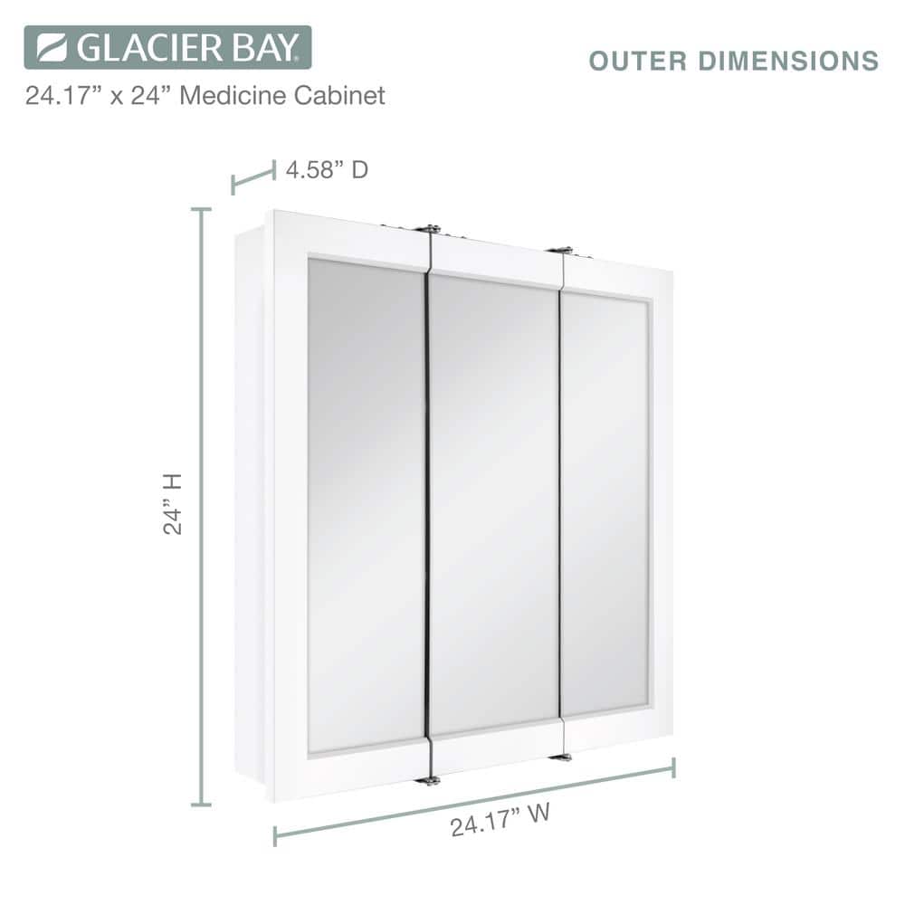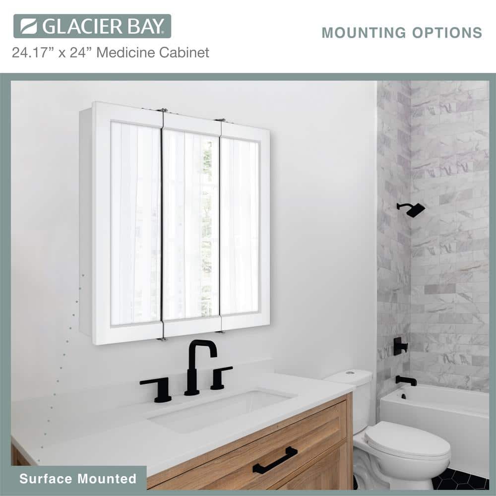 Glacier Bay 24-3/16 in. W x 24 in. H Framed Surface-Mount Tri-View Bathroom Medicine Cabinet with Mirror, White