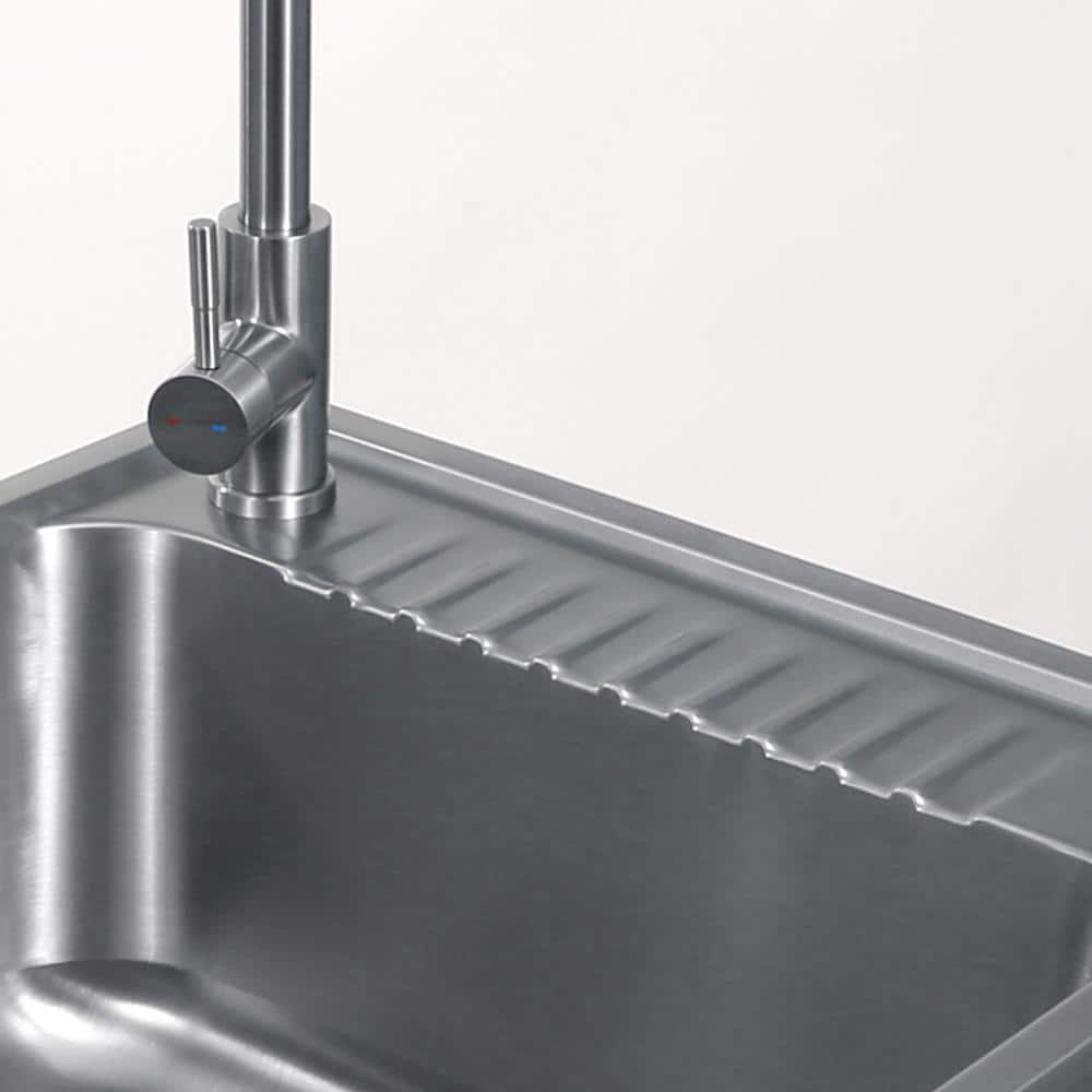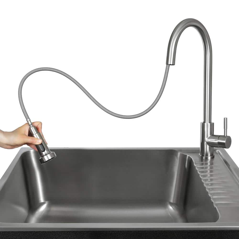 • Integrated Design: Includes a utility sink with a strainer, storage cabinet, and pull-down faucet.