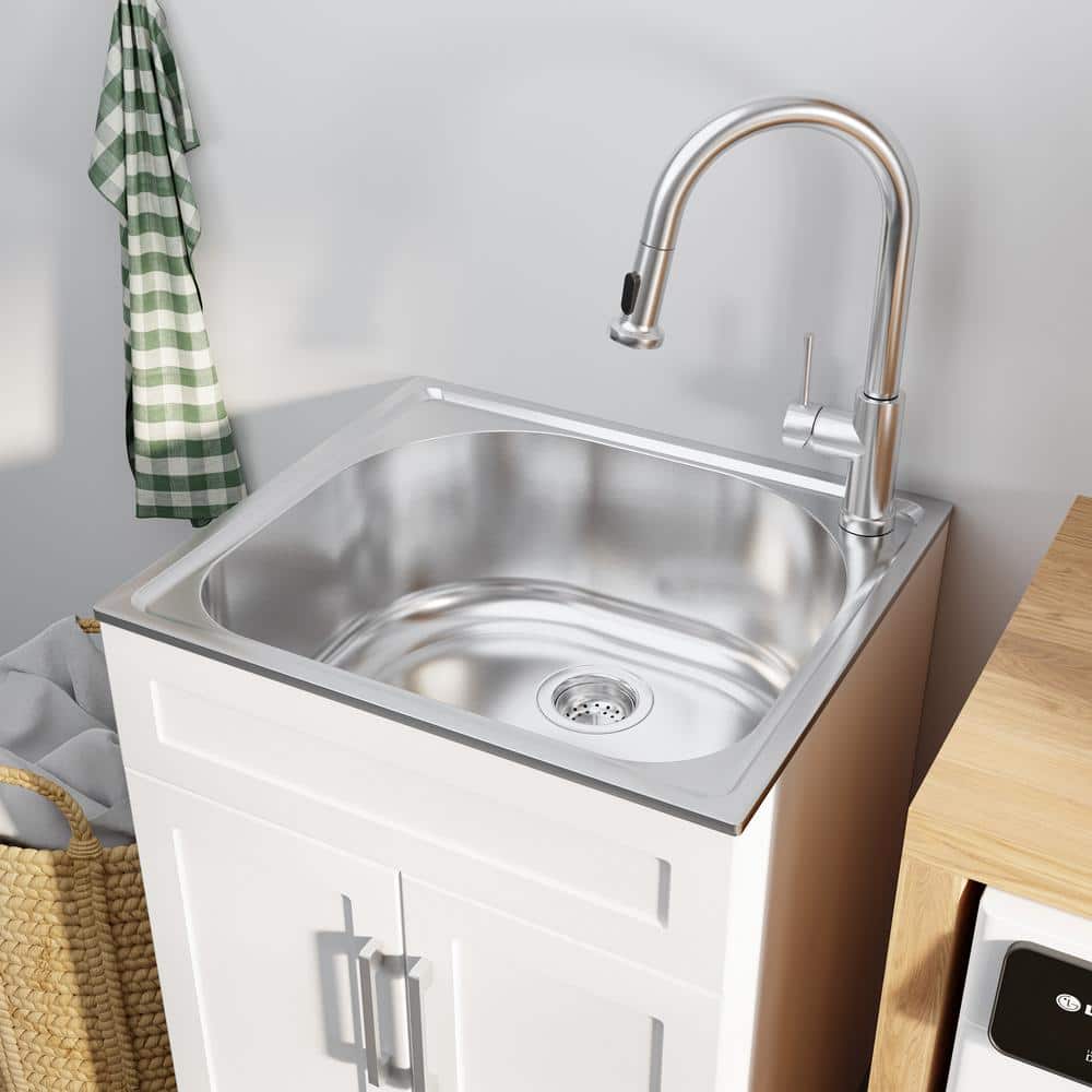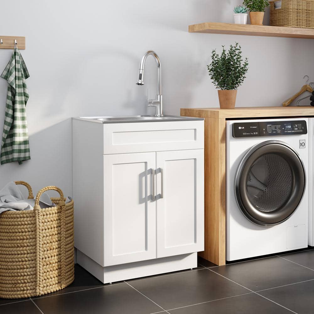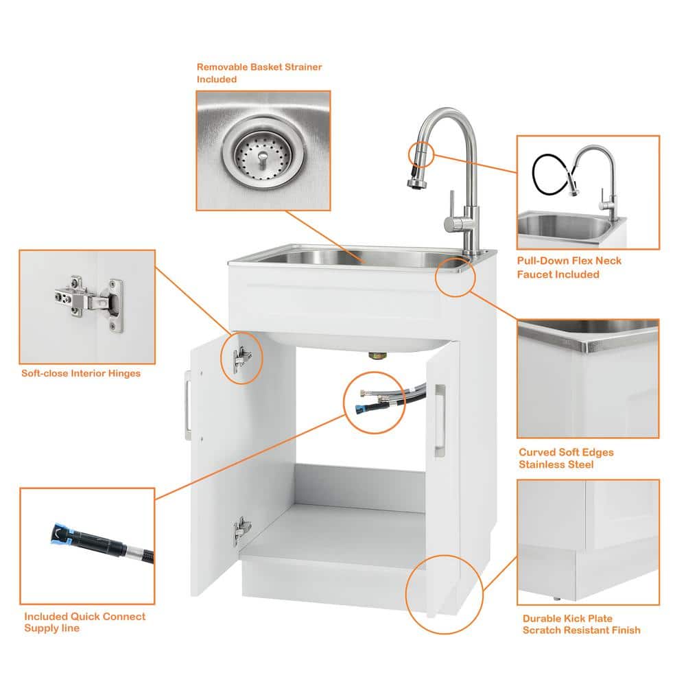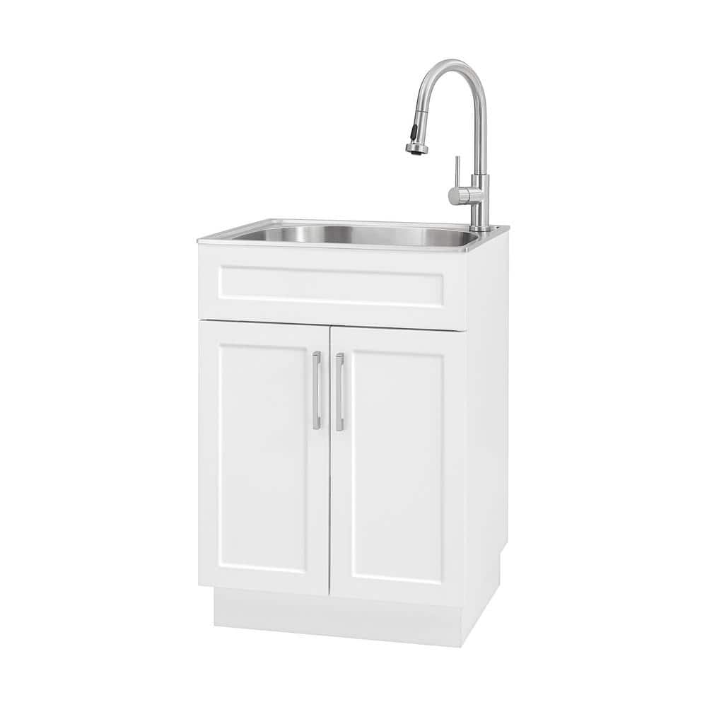 Glacier Bay All-in-One Stainless Steel Utility Sink with Faucet and Cabinet, White