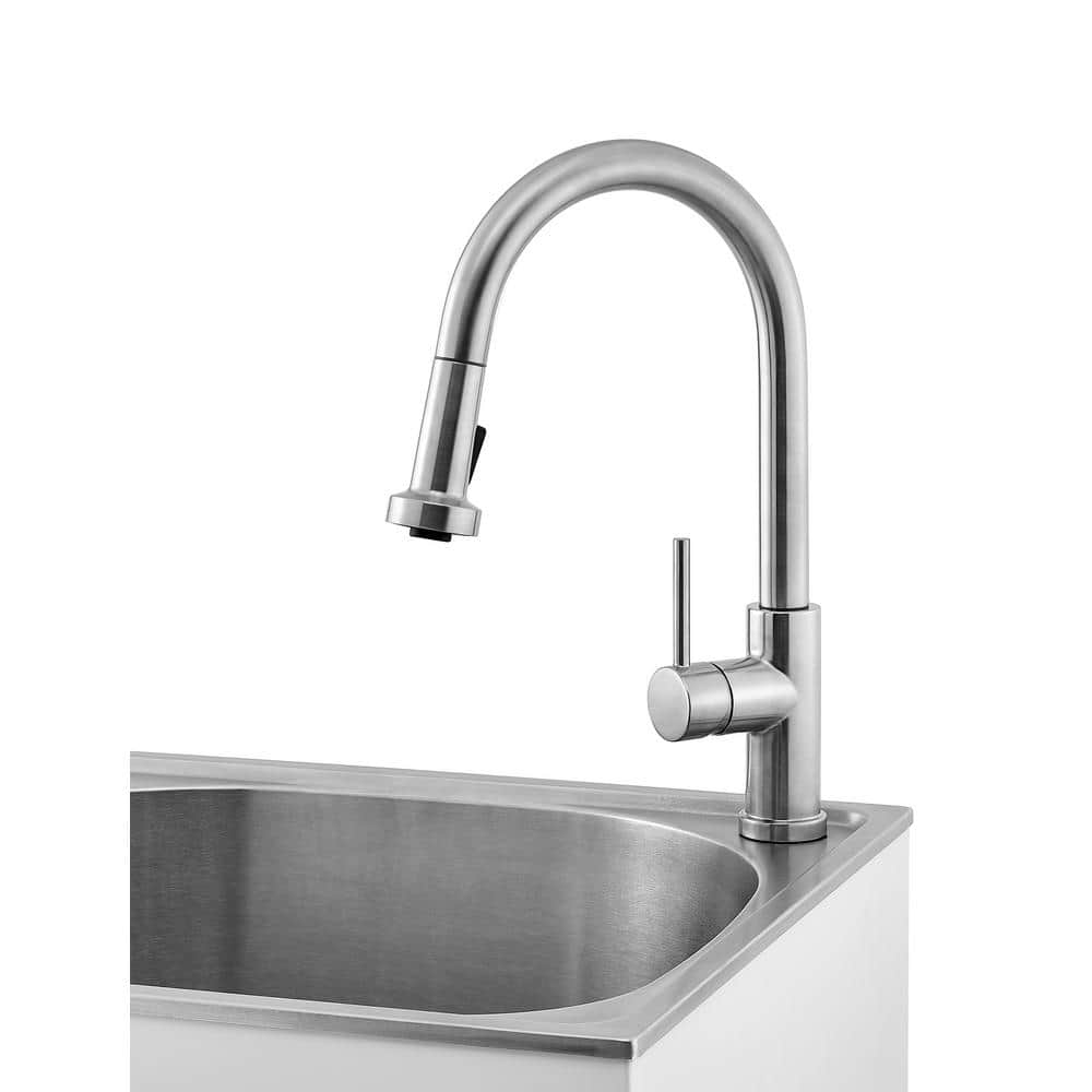 • Quick Installation: Includes pull-out faucet and water supply lines for speedy setup.