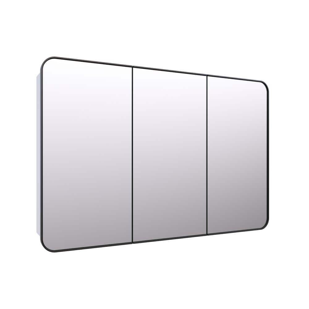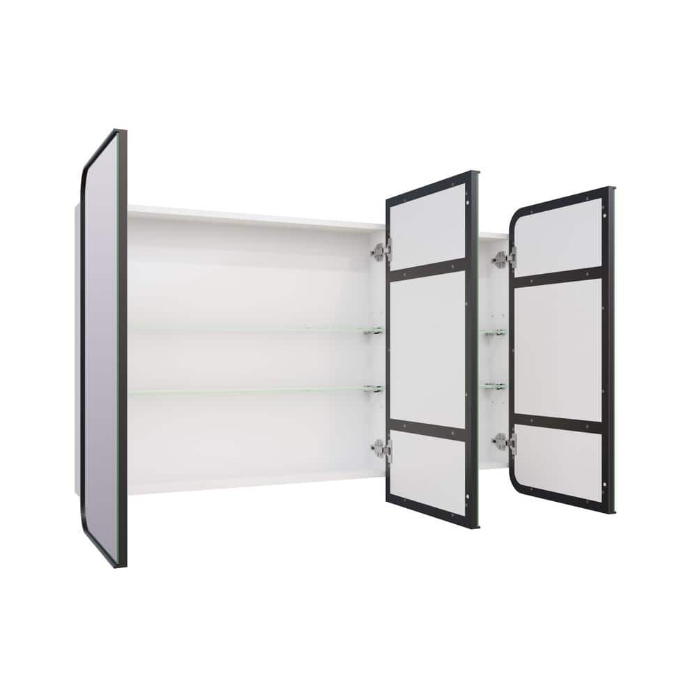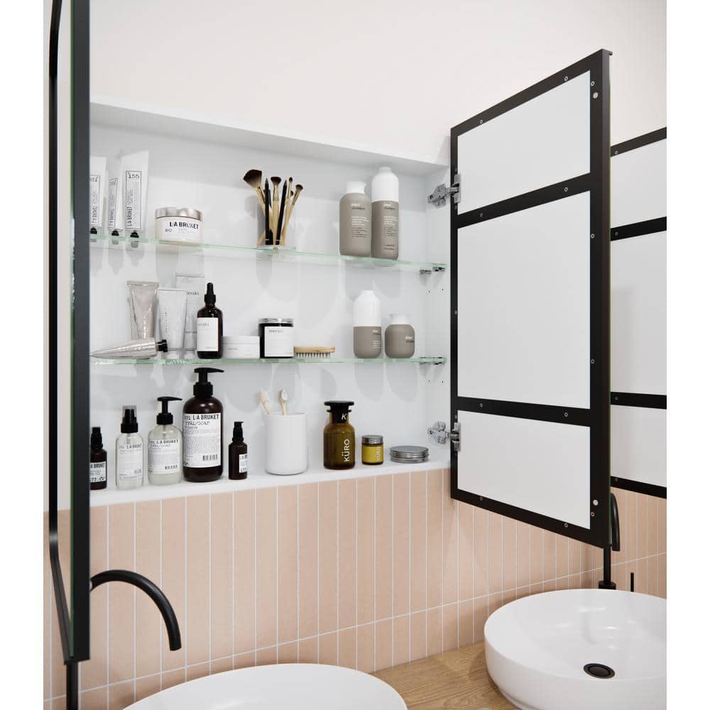 Elevate your bathroom with the Glass Warehouse Calla Recessed Medicine Cabinet, featuring a sleek black finish and a spacious mirrored design. Recessed for a seamless look, this cabinet offers ample storage with four adjustable tempered glass shelves, enhancing your bathroom's sophistication and functionality.