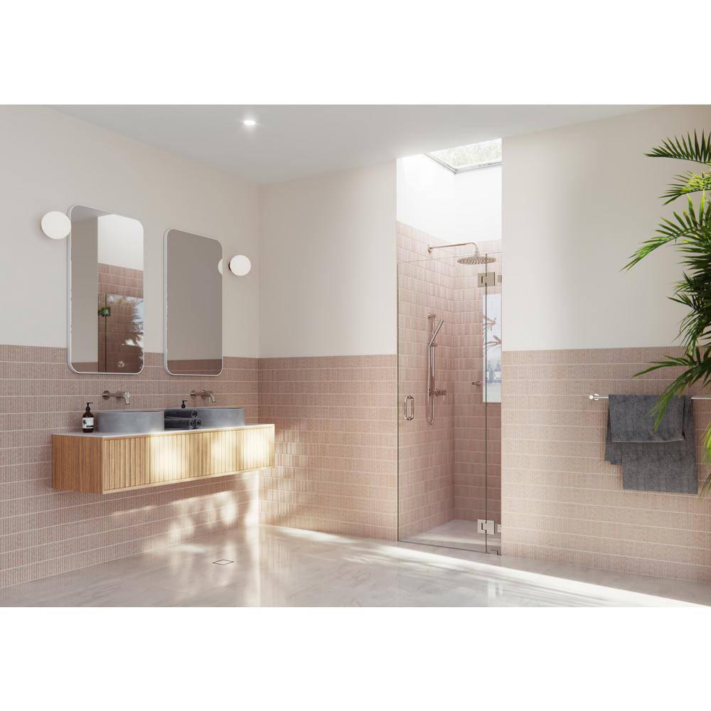 With the Halo Frameless Shower Door, transform your bathroom into a sanctuary of sophistication and elegance. The clear tempered glass allows for an uninterrupted flow of light, creating an illusion of expanded space. The polished nickel hardware lends a touch of chic minimalism, harmoniously blending with any modern decor. Position it against a backdrop of sleek tiles or subtle marbles, and let the timeless design elevate your space to new heights of luxury living.