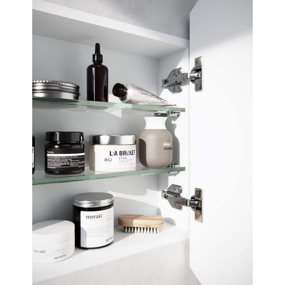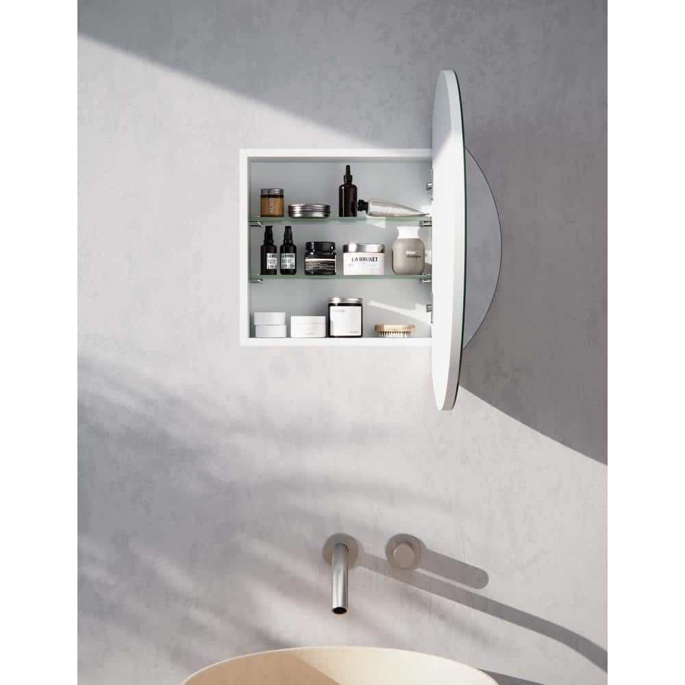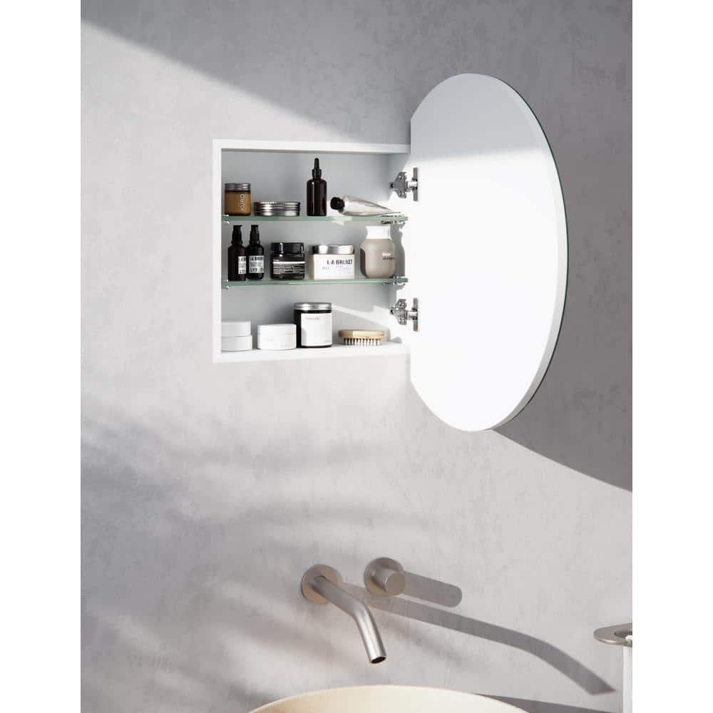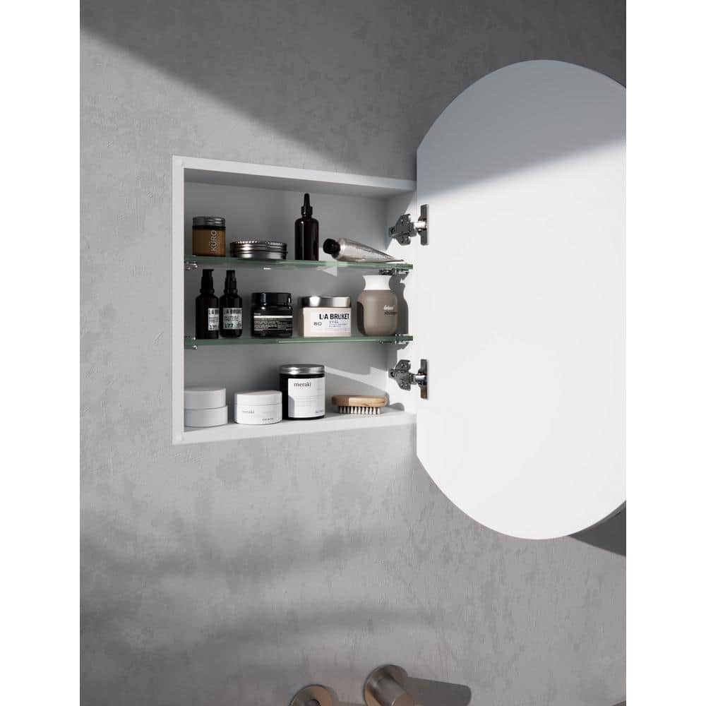 The Glass Warehouse Orsa 24" Recessed Medicine Cabinet is a stylish and practical addition to any bathroom. Its sleek white finish and reversible mirrored door create an elegant look while providing convenient storage. With its recessed design and adjustable tempered glass shelves, it's perfect for maintaining a tidy and sophisticated space.