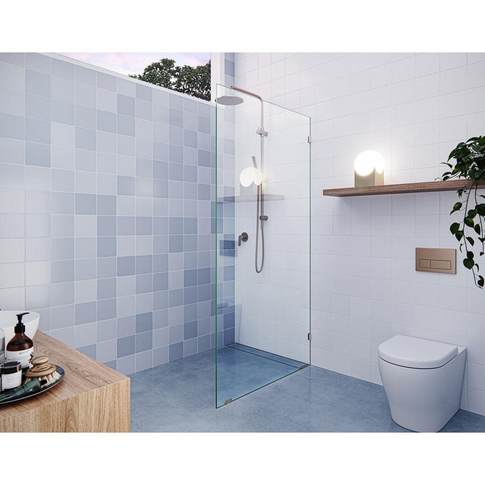 The Vela Shower Door from Glass Warehouse is more than just a bathroom fixture—it's a statement of refined taste and modern sophistication. With its expansive, frameless design and brushed bronze accents, this door elevates any bathroom into a magazine-worthy space. Imagine pairing it with lush, monochromatic tiles or contrasting textured walls to highlight its clarity and finesse. Embrace the minimalist allure of the Vela, a true testament to the art of contemporary living.