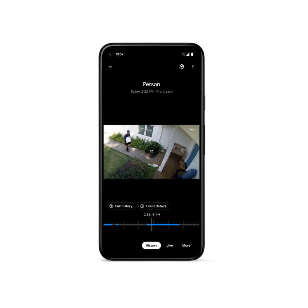 • Smart Alerts: Receive notifications for specific activities, like people or vehicle movement, directly on your phone via Google Home app.