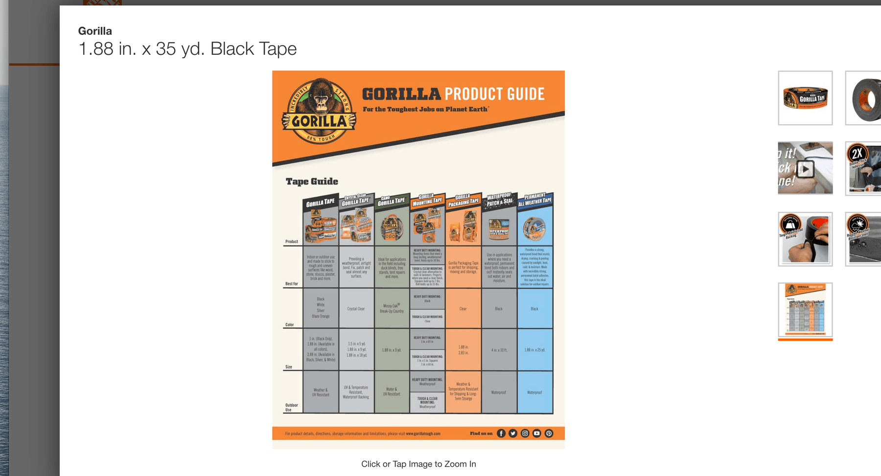 Gorilla 1.88 in. x 35 yd. Black Tape