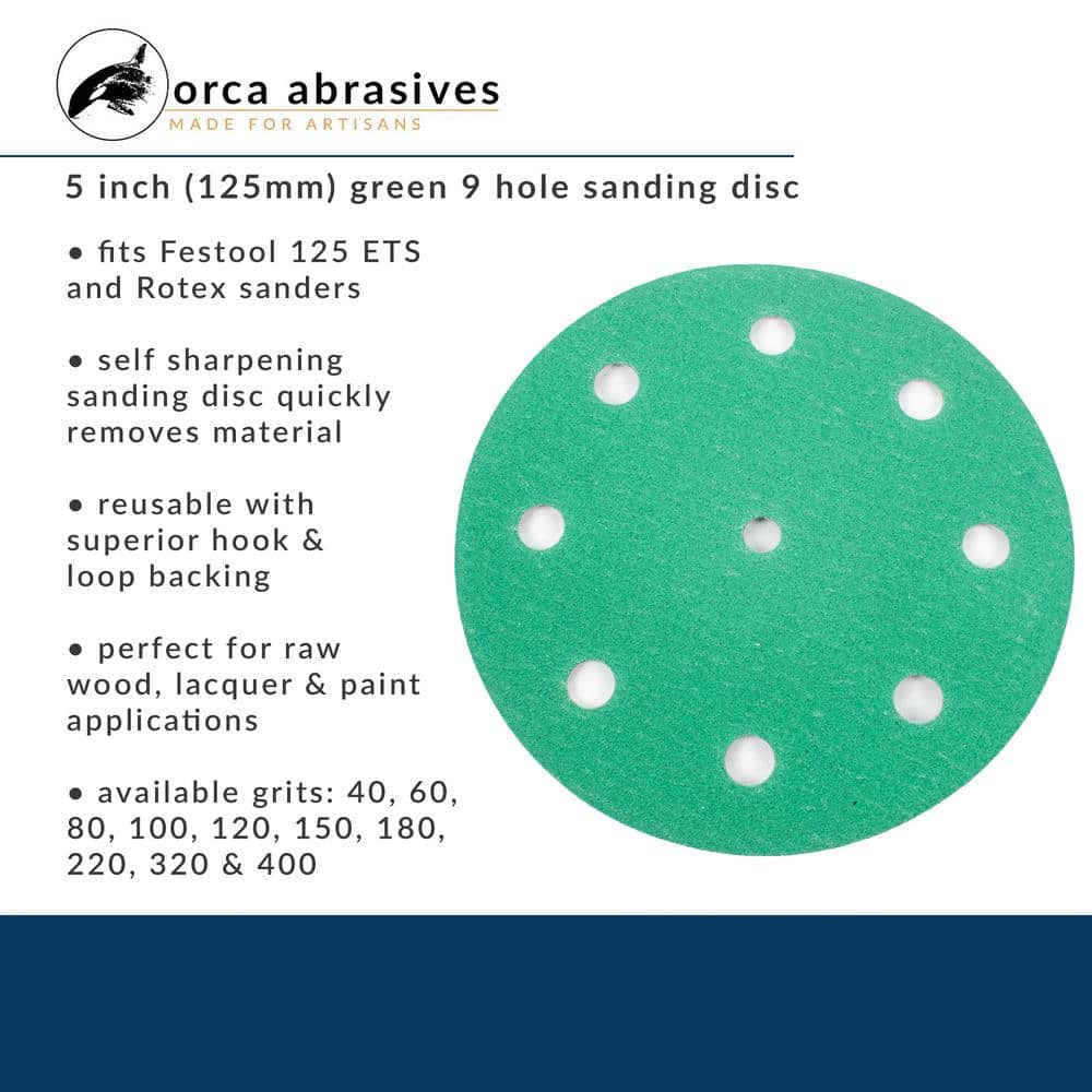 Upgrade your sandpaper arsenal with Orca's Green 180 Grit Fine Sanding Discs and achieve professional-grade finishes today.