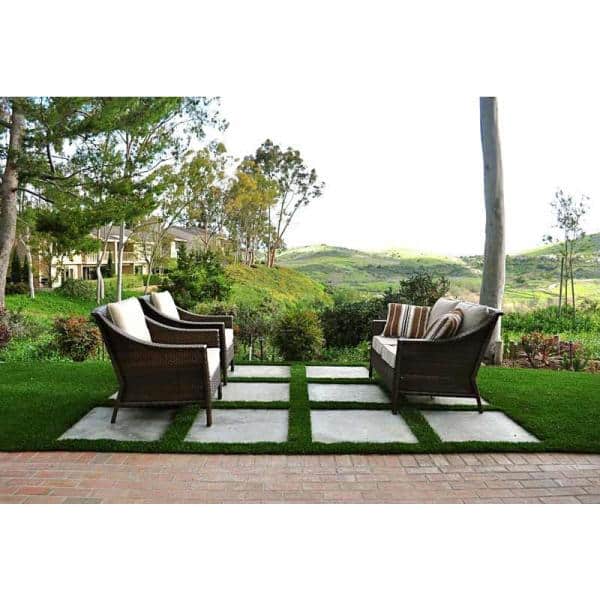 A: No watering or mowing is required. This artificial grass offers a low-maintenance solution to maintaining a lush, green lawn all year.