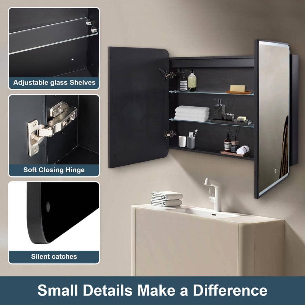 The grossag LED Metal Medicine Cabinet merges style and innovation with a modern defogging mirror and versatile storage options. Its high-quality iron build, adjustable LED lighting, and soft-closing hinges enhance any bathroom space while ensuring clarity and convenience.