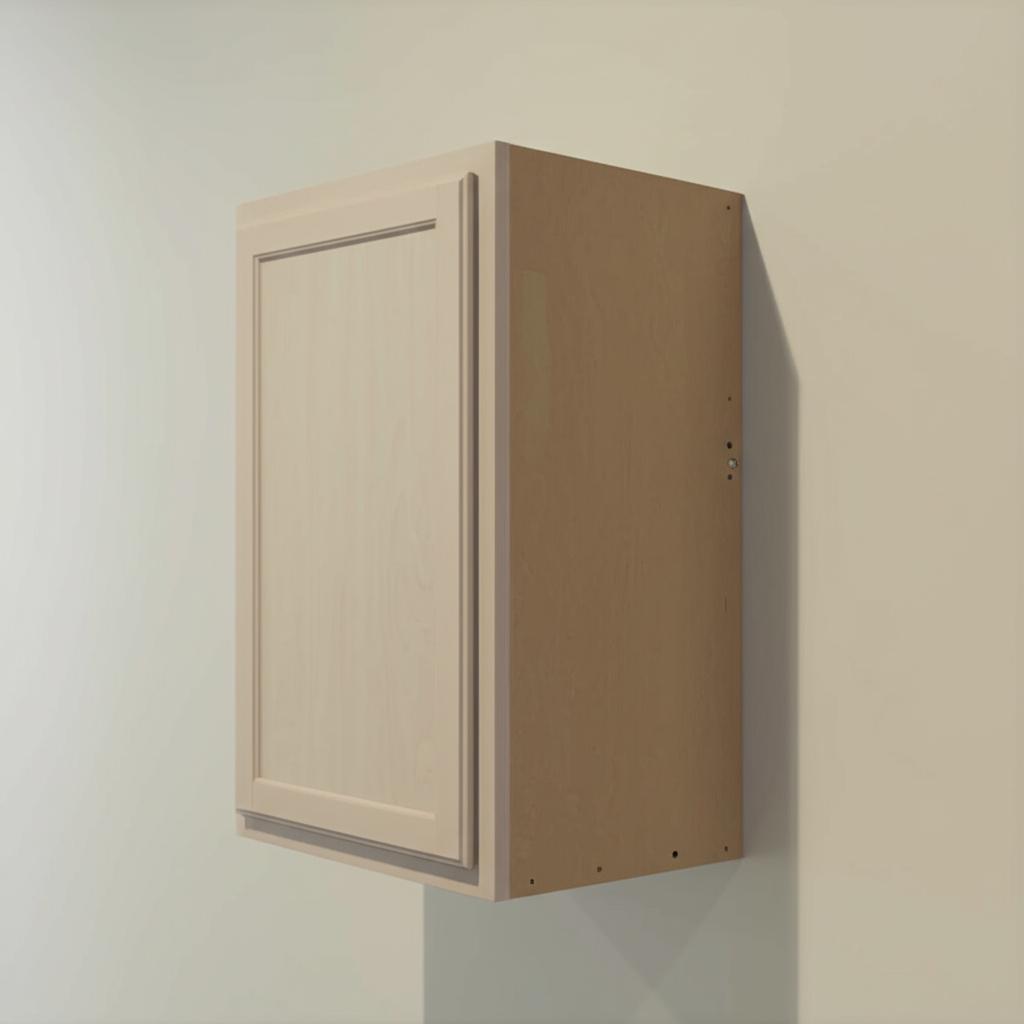 The Hampton Bay 18 in. Wall Kitchen Cabinet offers a customizable design with an unfinished surface ready for painting or staining. Featuring a solid wood doorframe with recessed panels and a durable composite box, this cabinet combines classic style with functionality. Its maple-laminated interior and adjustable shelf provide easy cleaning and flexible storage.