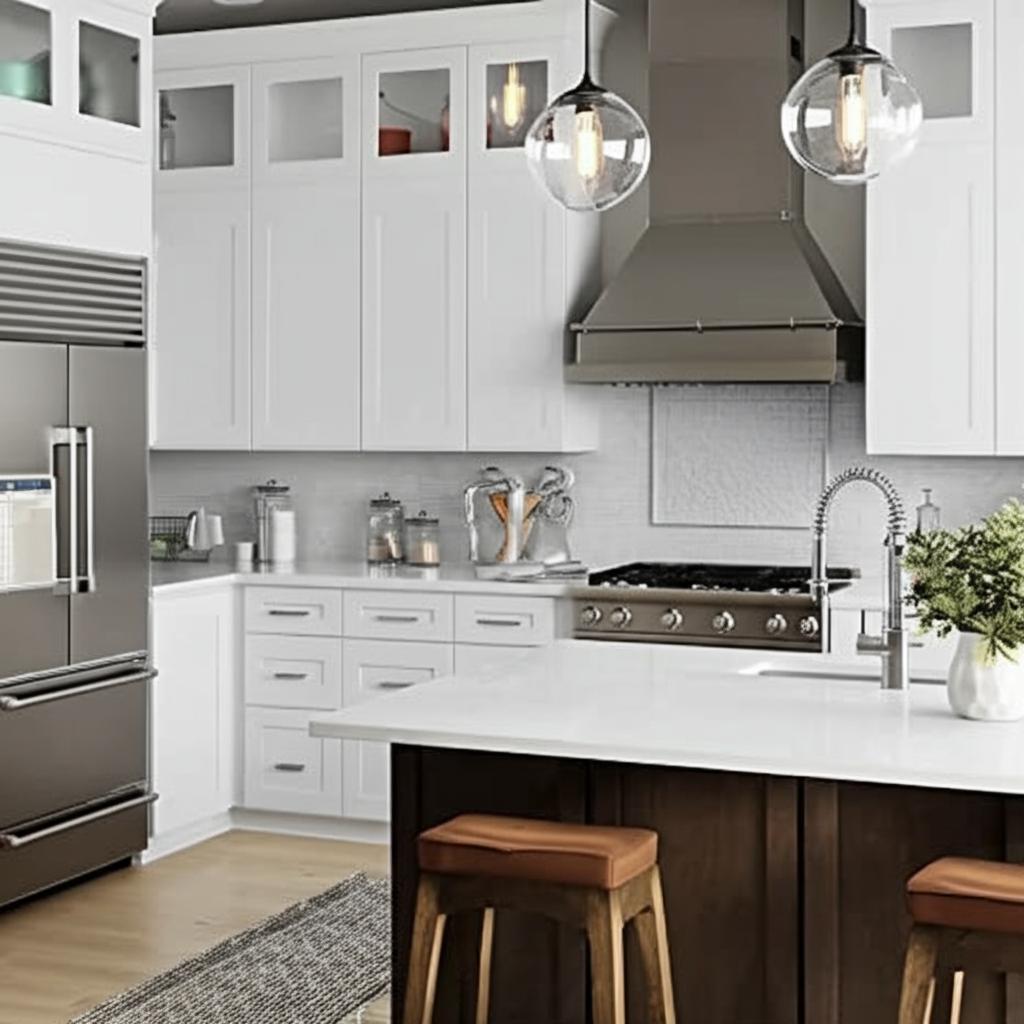 The Hampton Bay Avondale Shaker Wall Kitchen Cabinet in Alpine White combines durable plywood construction with a premium painted finish for a modern aesthetic. Featuring quick assembly technology, it installs up to 1.5x faster than competitors, offering efficient and stylish storage.