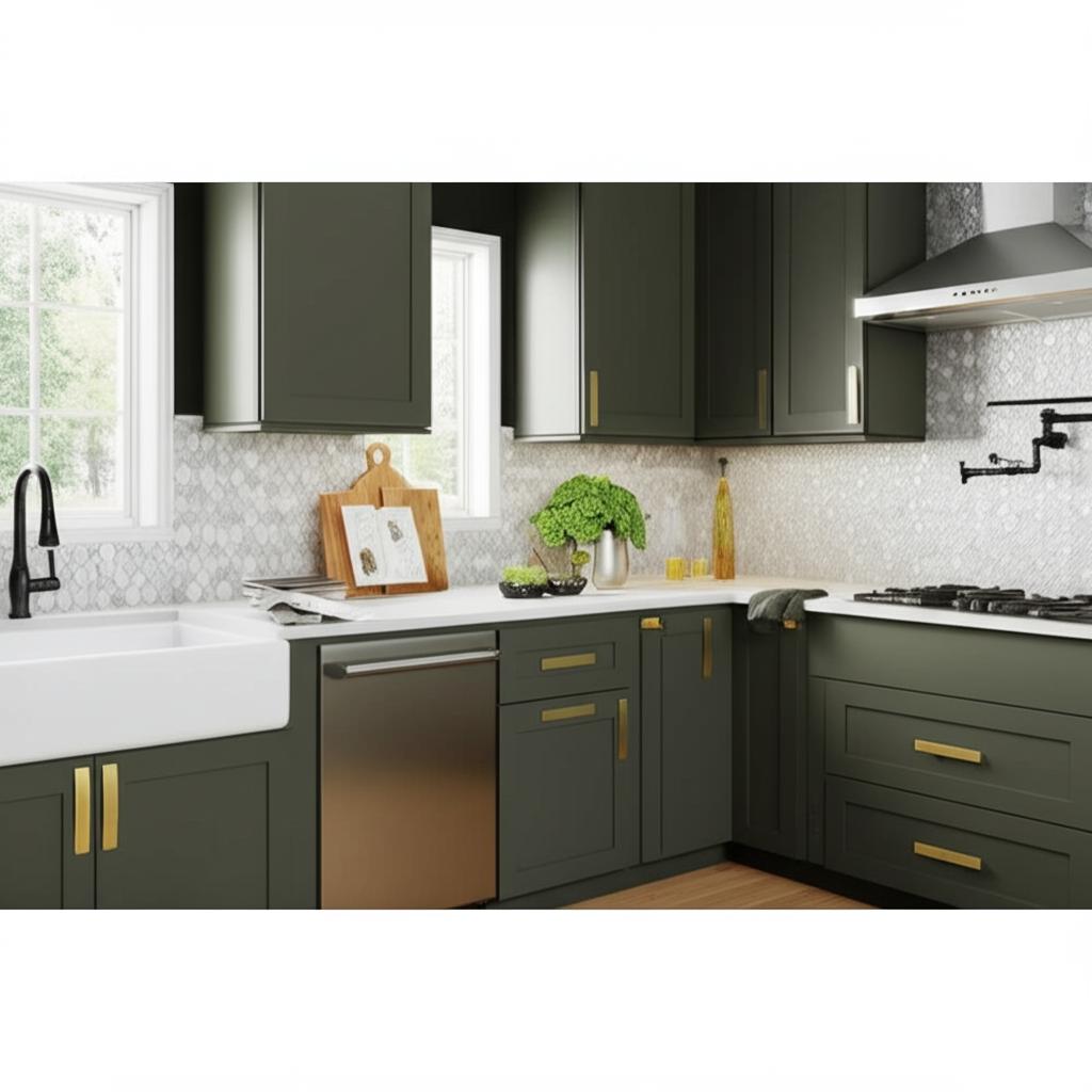 The Hampton Bay Avondale Shaker Wall Cabinet in Fern Green is a masterpiece of design and utility. Its rich green finish and classic Shaker style bring a touch of sophistication to any kitchen. Use its adjustable shelves to showcase your finest dinnerware or keep essentials neatly organized. This cabinet is not just storage—it's a statement piece that elevates your space with its refined elegance.