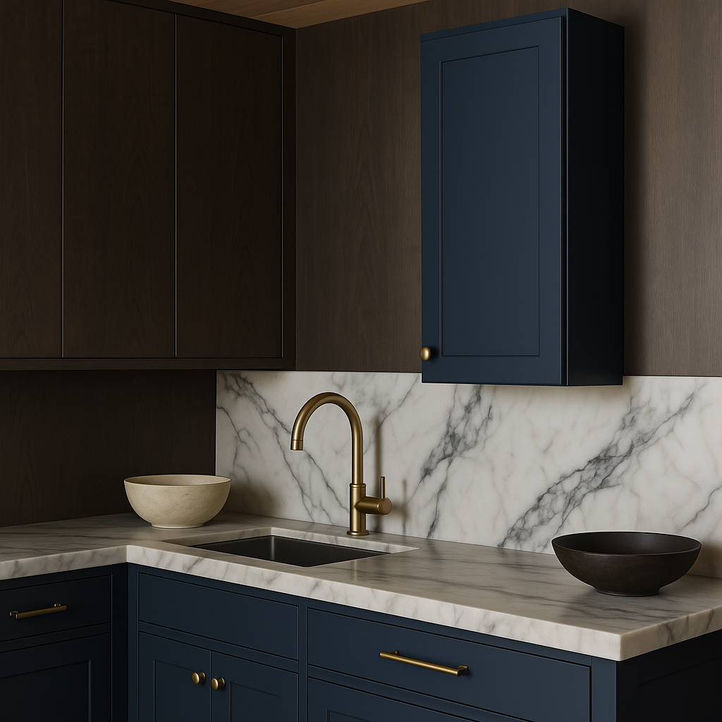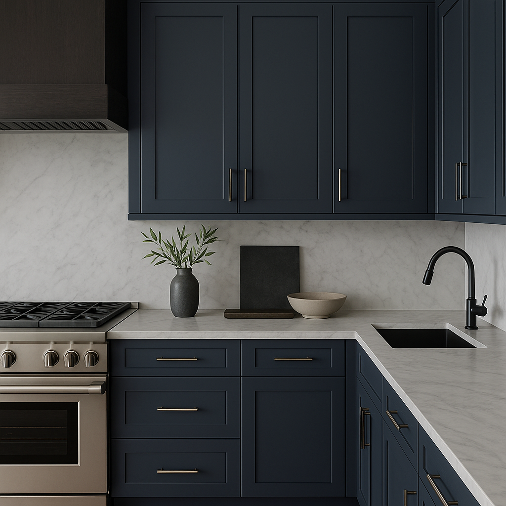 • Elegant Design: Shaker-style door with a premium painted Ink Blue finish.
