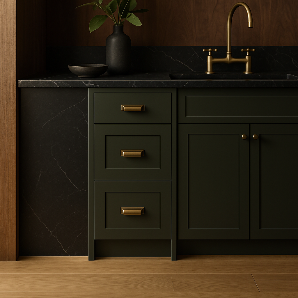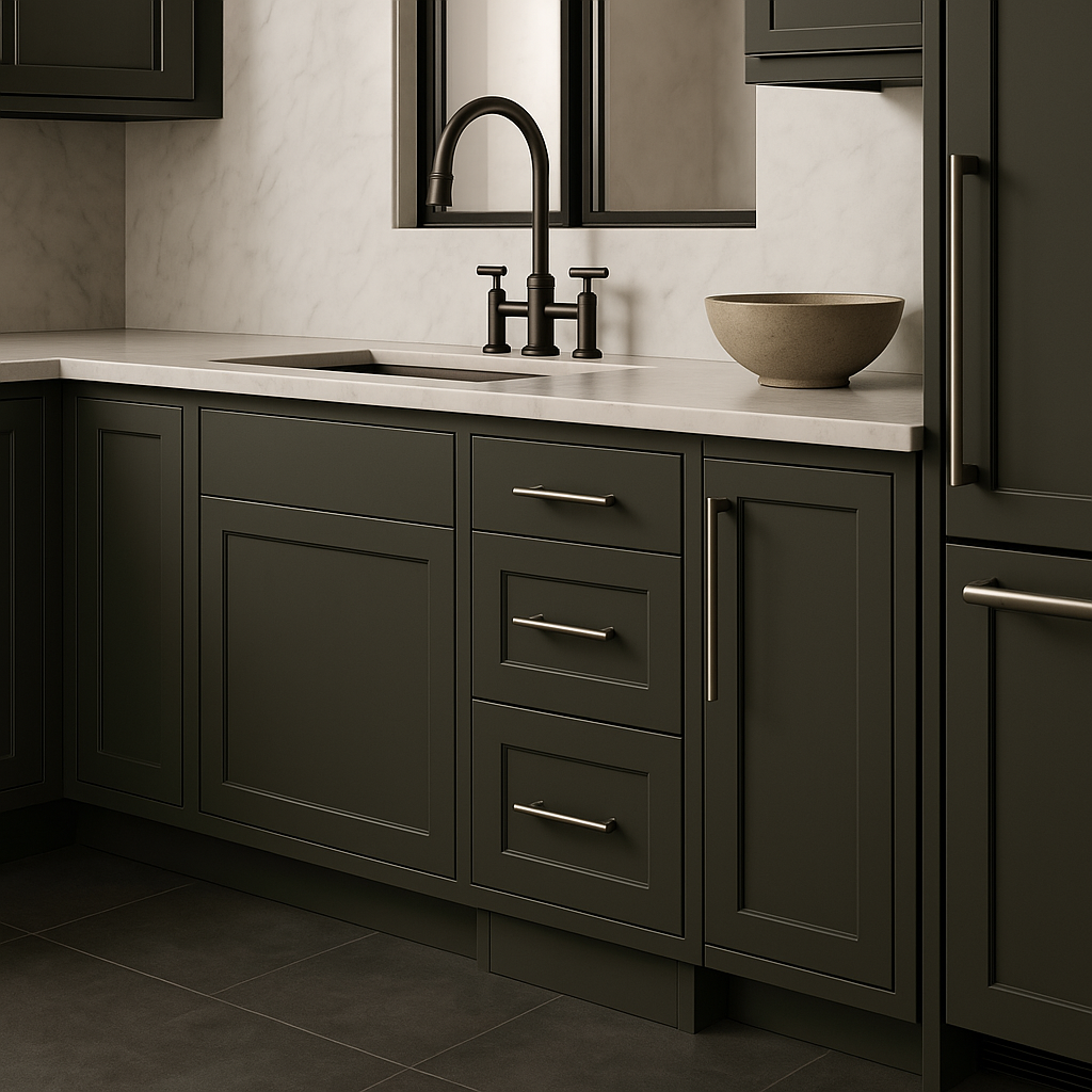 The Hampton Bay Avondale Shaker Drawer Base Cabinet in Fern Green is a masterpiece of design and functionality. Its rich green hue and shaker style bring a touch of sophistication to any kitchen space. Pair it with natural wood countertops for a harmonious blend of modern and rustic aesthetics. This cabinet is not just a storage solution; it's a statement piece that transforms your kitchen into a haven of style and practicality.