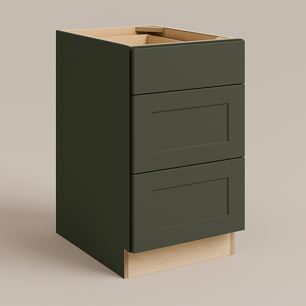 The Hampton Bay Avondale Shaker Drawer Base Cabinet combines premium plywood construction with a durable painted finish in Fern Green. Featuring soft-close drawers and quick assembly technology, this cabinet is perfect for modern kitchens.