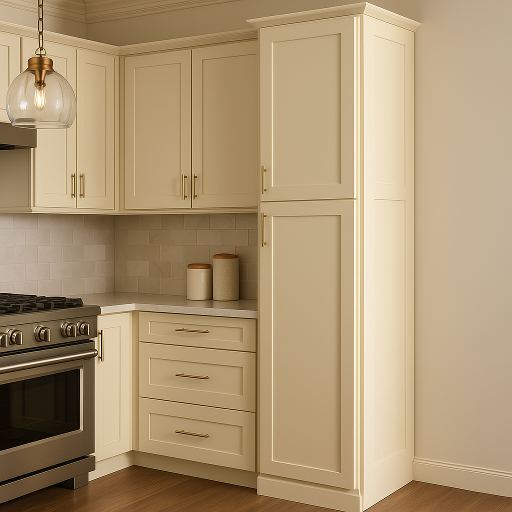 The Hampton Bay Avondale Shaker Pantry Cabinet combines traditional shaker styling with a creamy antique white finish for a timeless look. Featuring durable plywood construction and soft-close doors, this cabinet is designed for quick assembly and maximum storage efficiency.