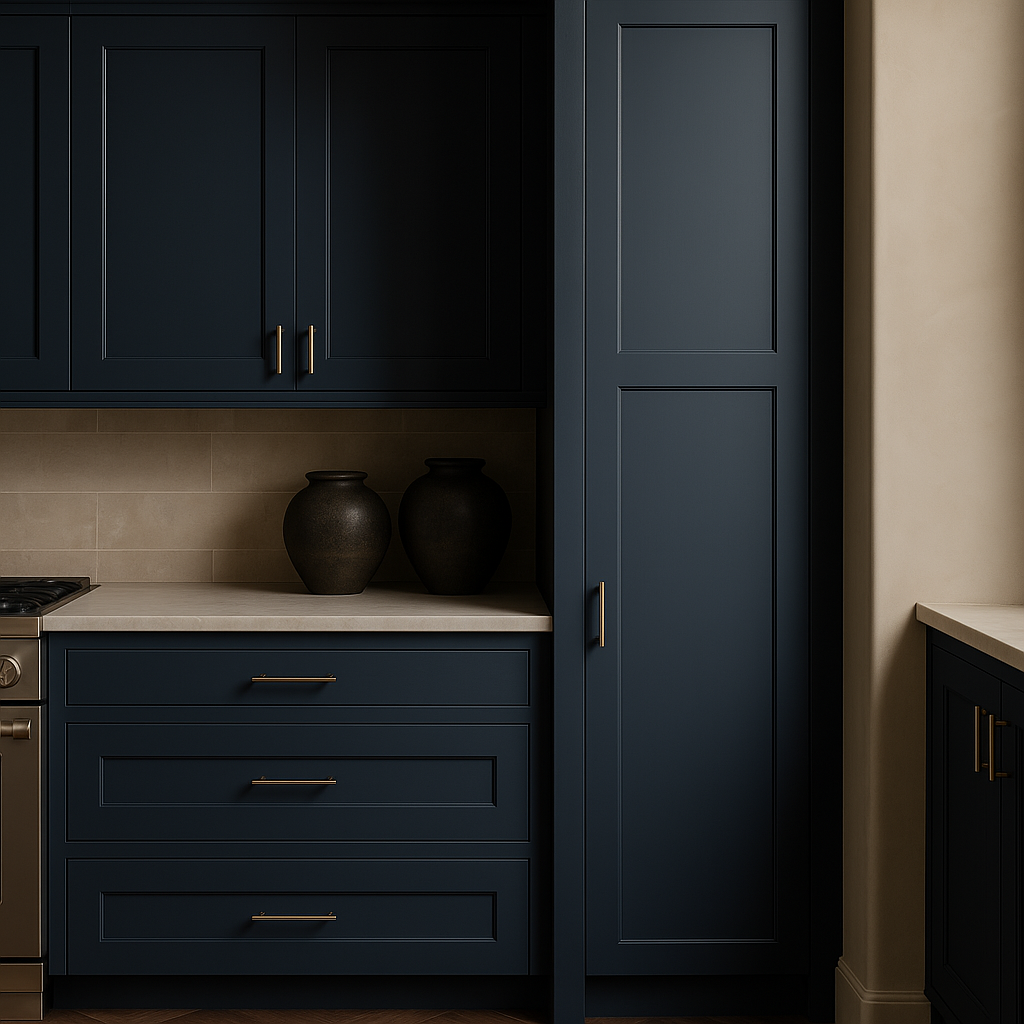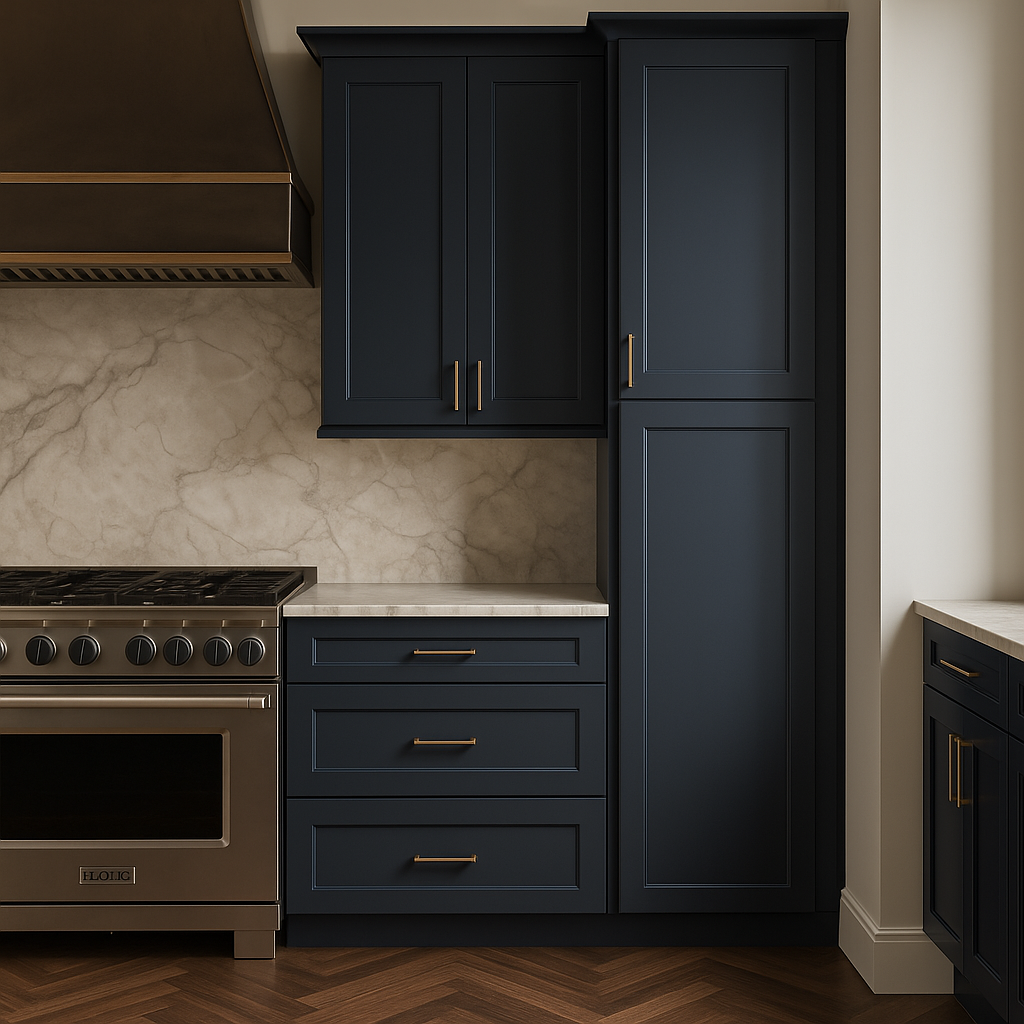 Upgrade your kitchen with the Hampton Bay Avondale Shaker Pantry Cabinet in Ink Blue today!