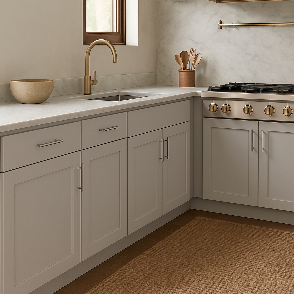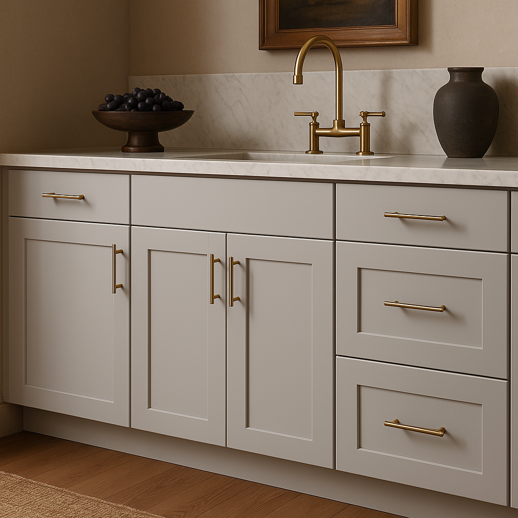 • Elegant Design: Traditional shaker styling in a light Dove Gray finish.