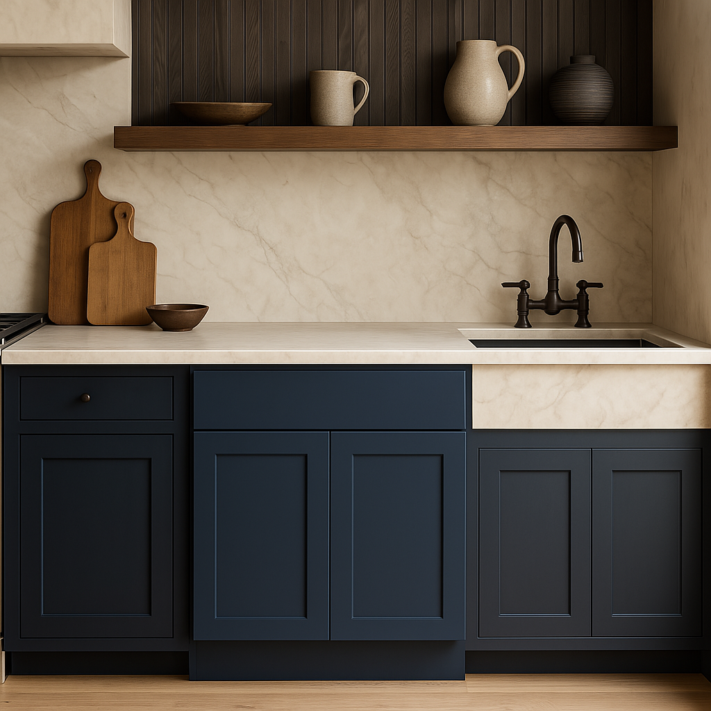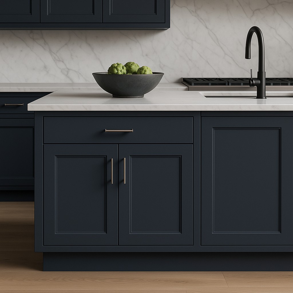 The Hampton Bay Avondale Shaker Base Kitchen Cabinet in Ink Blue combines timeless shaker design with durable plywood construction. Featuring soft-close doors and drawers, this cabinet offers both style and functionality for your kitchen.
