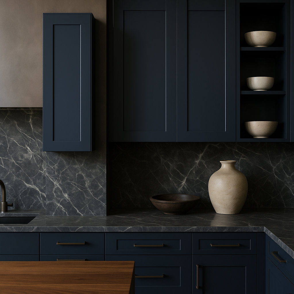 - Stylish Design: Shaker-style door in ink blue complements various kitchen styles.