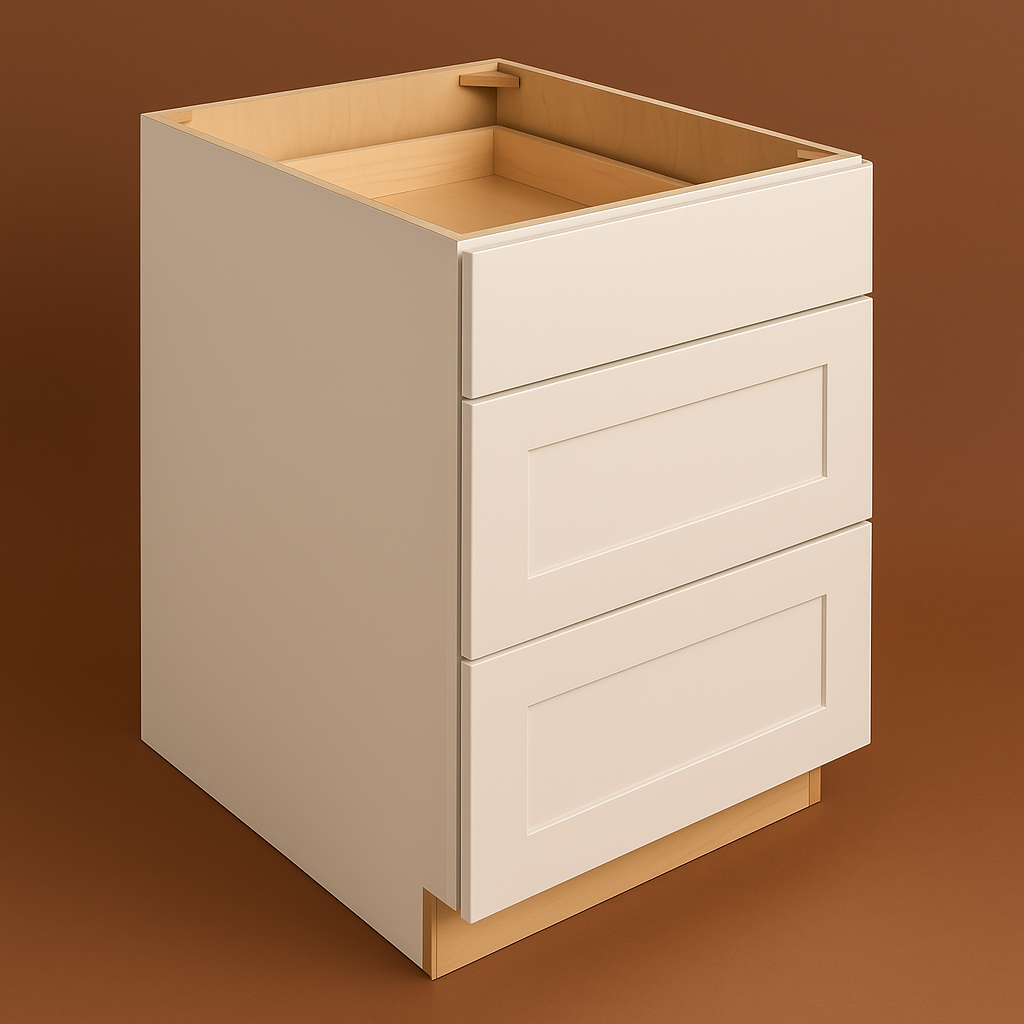 The Hampton Bay Avondale Shaker Drawer Base Cabinet is a masterpiece of design and utility. Its creamy antique white finish and shaker styling bring a touch of timeless elegance to any kitchen space. The soft-close drawers and durable plywood construction ensure both functionality and longevity. Pair it with sleek hardware and a marble countertop to create a sophisticated yet inviting kitchen ambiance. This cabinet is not just a storage solution; it's a statement of refined taste.