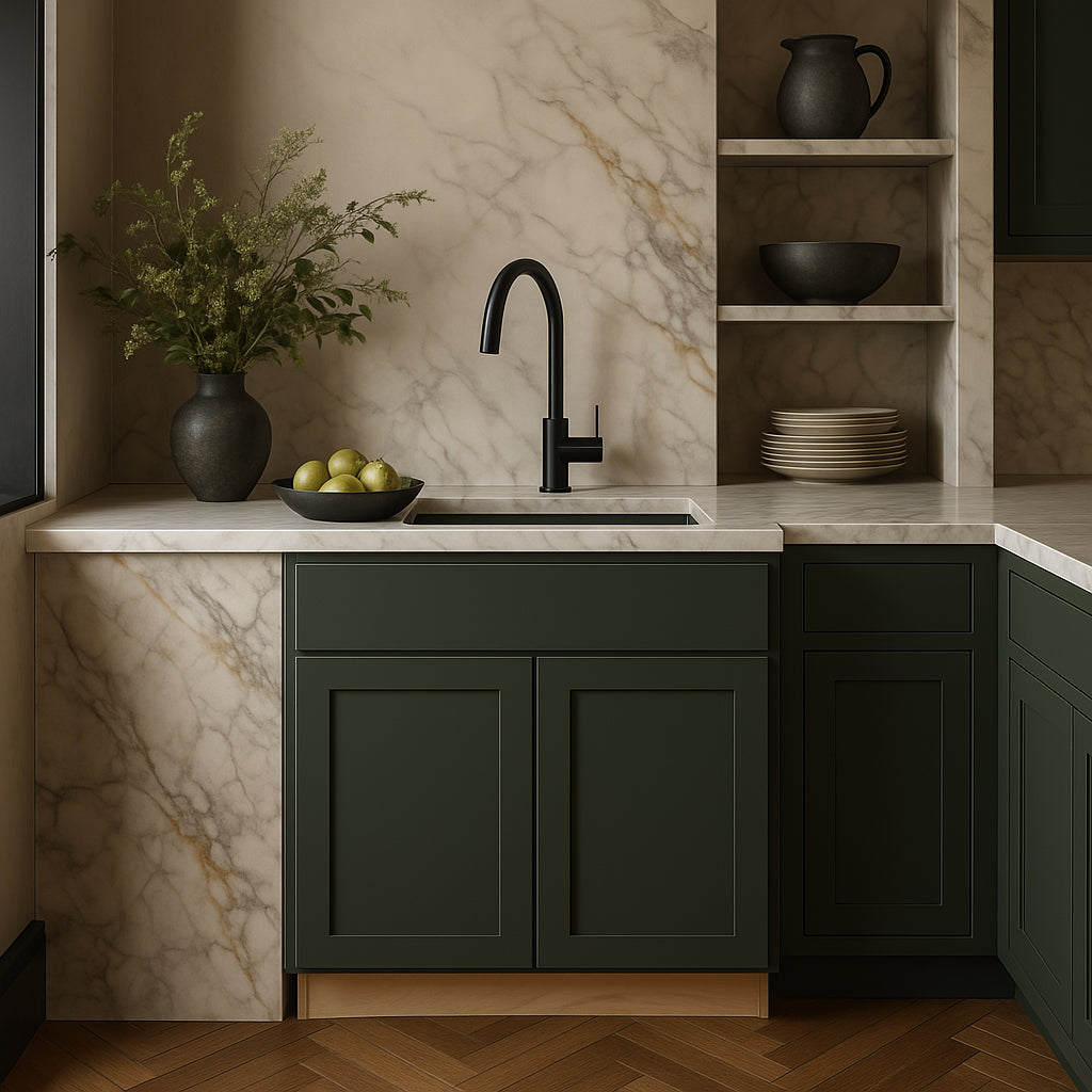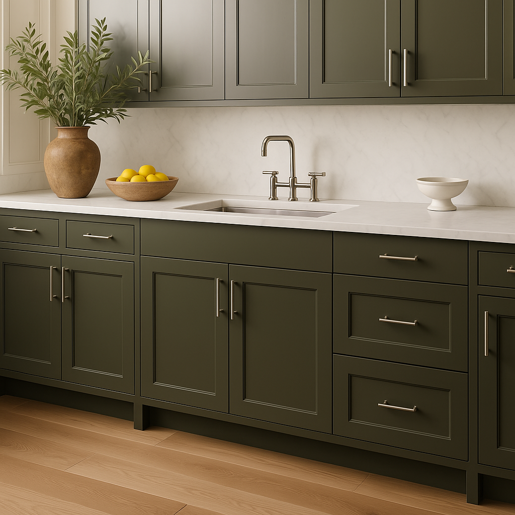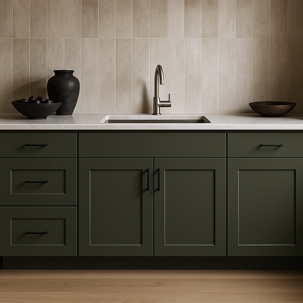 The Hampton Bay Avondale Shaker Sink Base Kitchen Cabinet combines timeless shaker design with a durable plywood construction and a premium painted finish in Fern Green. Its quick-assemble technology ensures easy setup, while soft-close doors add a touch of luxury.