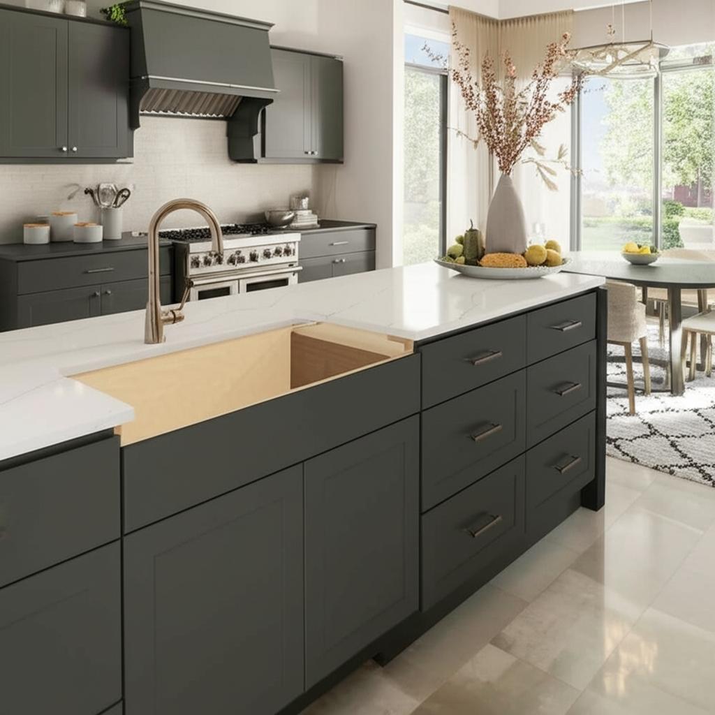 The Hampton Bay Avondale Shaker Cooktop Base Cabinet in Fern Green combines style and functionality with its durable plywood construction, soft-close features, and adjustable storage options. Perfect for modern kitchens, it offers a sleek shaker design and a premium painted finish.