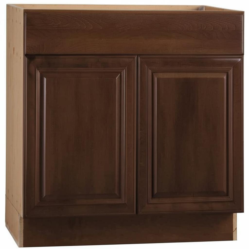 The Hampton Bay Benton Base Cabinet combines classic design with modern functionality, featuring a soft-close drawer and adjustable shelving. Its warm Butterscotch finish adds a cozy elegance to any kitchen, bathroom, or laundry room.