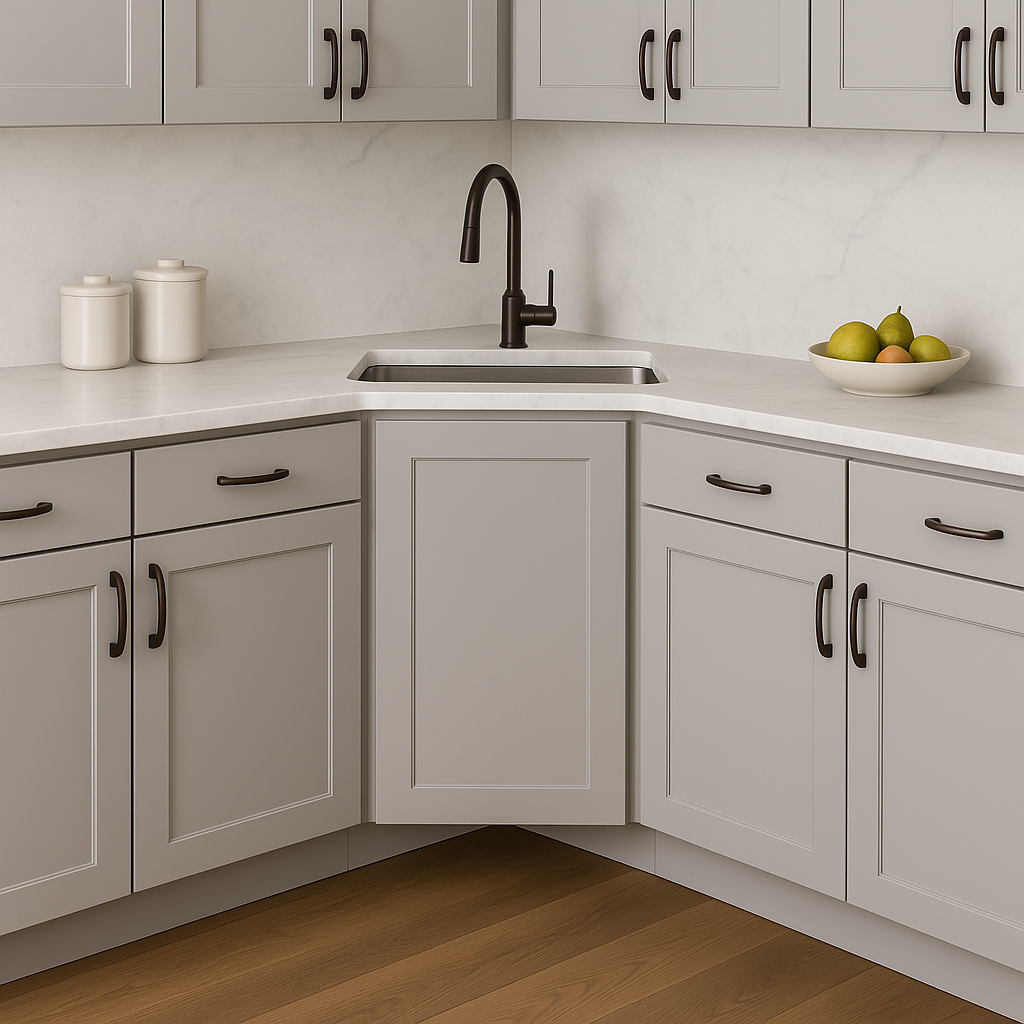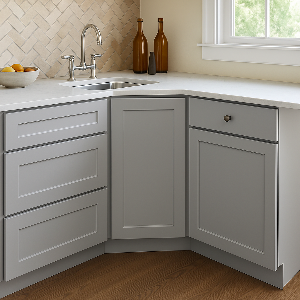 Hampton Bay Cambridge Gray Shaker Ready to Assemble Corner Sink Base Cabinet (36 in. W x 24.5 in. D x 34.5 in. H)