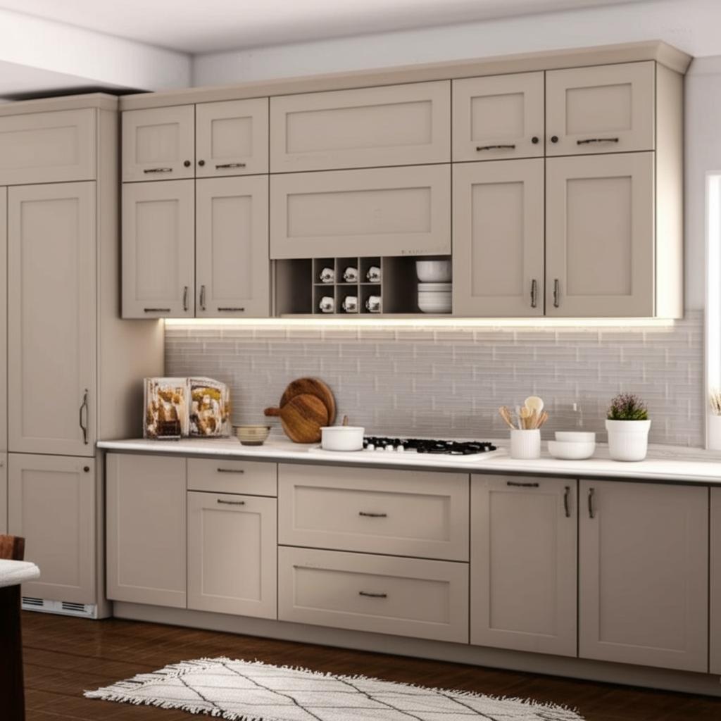 • Timeless Design: Classic shaker style with a sterling gray laminate finish.